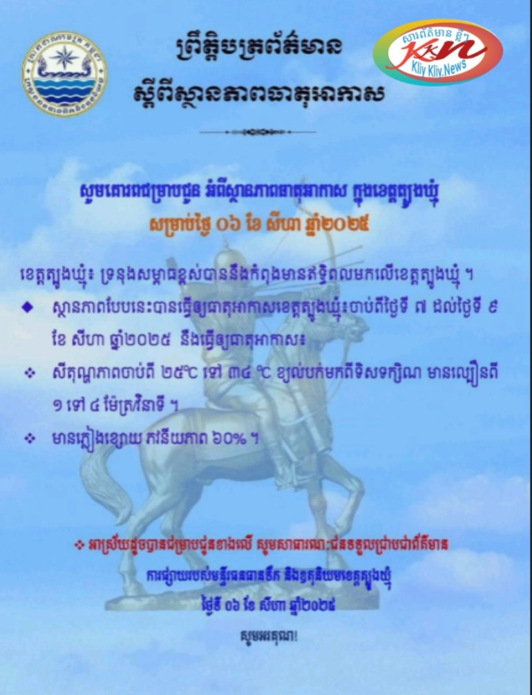 រៀបចំដោយមន្ទីរធនធានទឹក និងឧតុនិយម ខេត្តត្បូងឃ្មំ