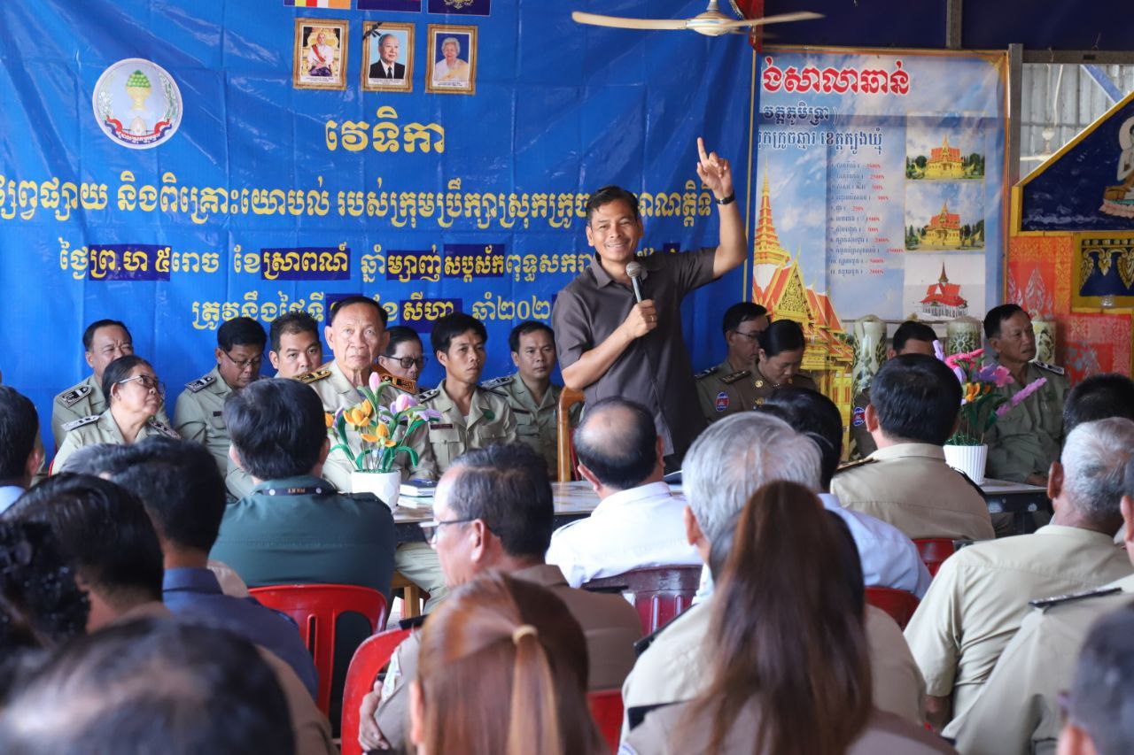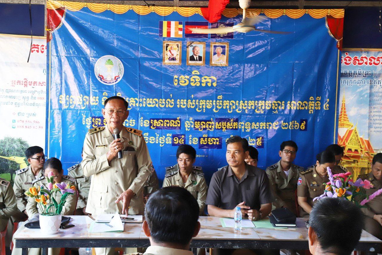 (ត្បូងឃ្មុំ): លោក អ៉ី សាហាក់ ប្រធានក្រុមប្រឹក្សាស្រុក និងលោក សយ ទូច អភិបាលនៃគណៈអភិបាលស្រុកក្រូចឆ្មារ បានអញ្ជើញជាអធិបតីក្នុងវេទិកាផ្សព្វផ្សាយ និងពិគ្រោះយោបល់ របស់ក្រុមប្រឹក្សាស្រុកក្រូចឆ្មារ អាណត្តិទី៤ ដើម្បីដោះស្រាយបញ្ហាប្រឈម ទុក្ខកង្វល់ និងចម្ងល់ ជូនដល់ប្រជាពលរដ្ឋក្នុងមូលដ្ឋានស្រុក នៅថ្ងៃទី១៤ ខែសីហា ឆ្នាំ២០២៥ នៅបរិវេណវត្តអំម្ពវ័ន្ត ឃុំទ្រា ស្ថិតនៅភូមិកន្តុលកណ្តាល ឃុំទ្រា ស្រុកក្រូចឆ្មារ ខេត្តត្បូងឃ្មុំ ។