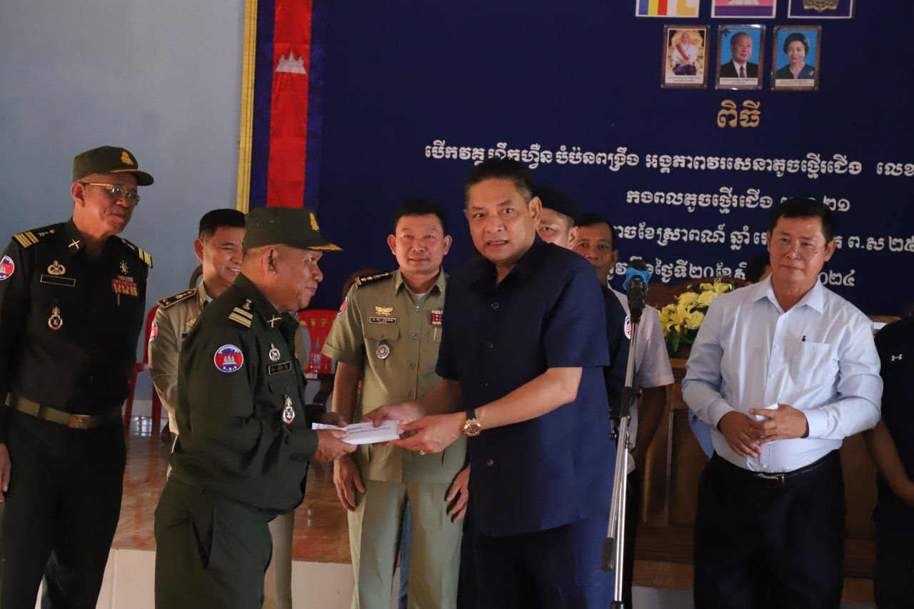 អំណោយដែល ឯកឧត្តម ប៉ែន កុសល្យ អភិបាលនៃគណៈអភិបាលខេត្តត្បូងឃ្មុំ បានដឹកនាំយកមកប្រគល់ផ្ទាល់ចែកជូនគ្រួសារវីរៈកងទ័ព នាពេលនេះ ដោយក្នុង ១គ្រួសារៗ ទទួលបាន រួមមាន ៖ អង្ករ ៥០គីឡូក្រាម, មី ២កេស, ភេសជ្ជៈ ១កេស, ត្រីខ ២យួរ, ទឹកត្រី ១យួរ, ទឹកស៉ីវ ១យួរ, ធូបមូស ៤ប្រអប់ និងថវិកា ១០ម៉ឺនរៀលផងដែរ ។