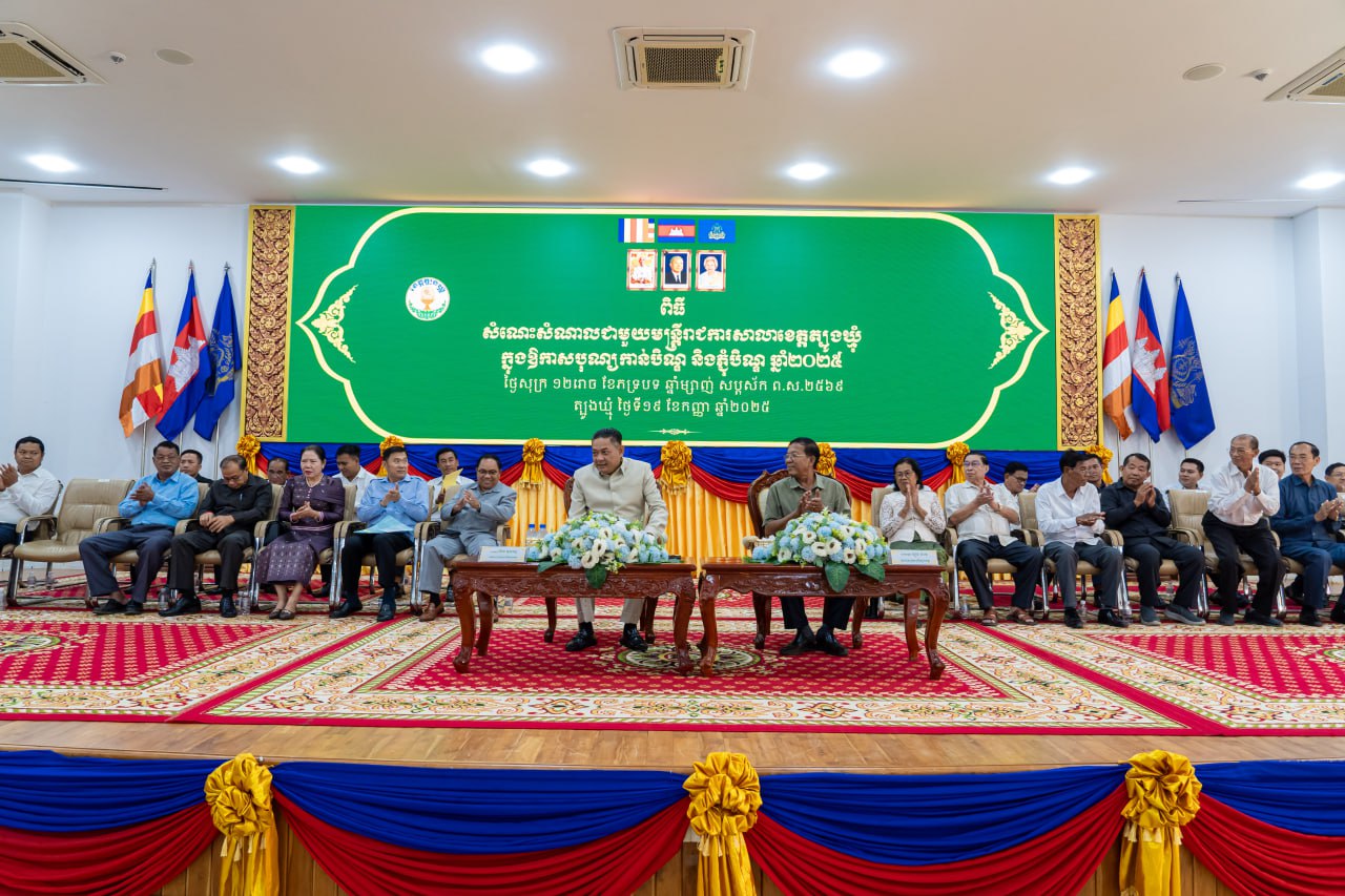 ( ត្បូងឃ្មុំ ): ឯកឧត្ដម ឡុង ធាម ប្រធានក្រុមប្រឹក្សាខេត្ត និងឯកឧត្ដម ប៉ែន កុសល្យ អភិបាលនៃគណៈអភិបាលខេត្តត្បូងឃ្មុំ បានអញ្ជើញជួបសំណេះសំណាលជាមួយមន្ត្រីរាជការសាលាខេត្តត្បូងឃ្មុំ នារសៀលថ្ងៃទី ១៩ ខែកញ្ញា ឆ្នាំ ២០២៥ នៅសាលប្រជុំសាលាខេត្តត្បូងឃ្មុំ ។
