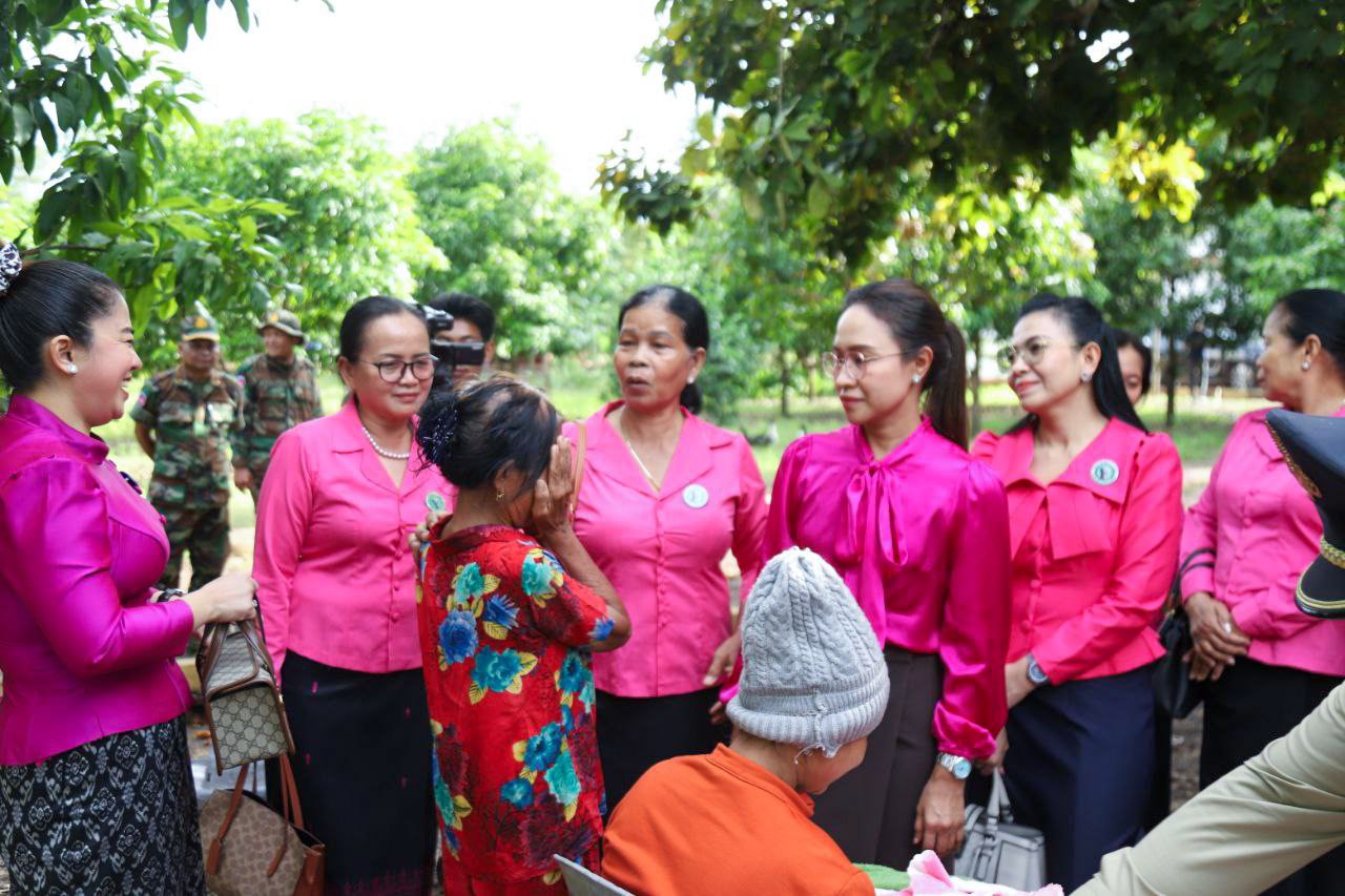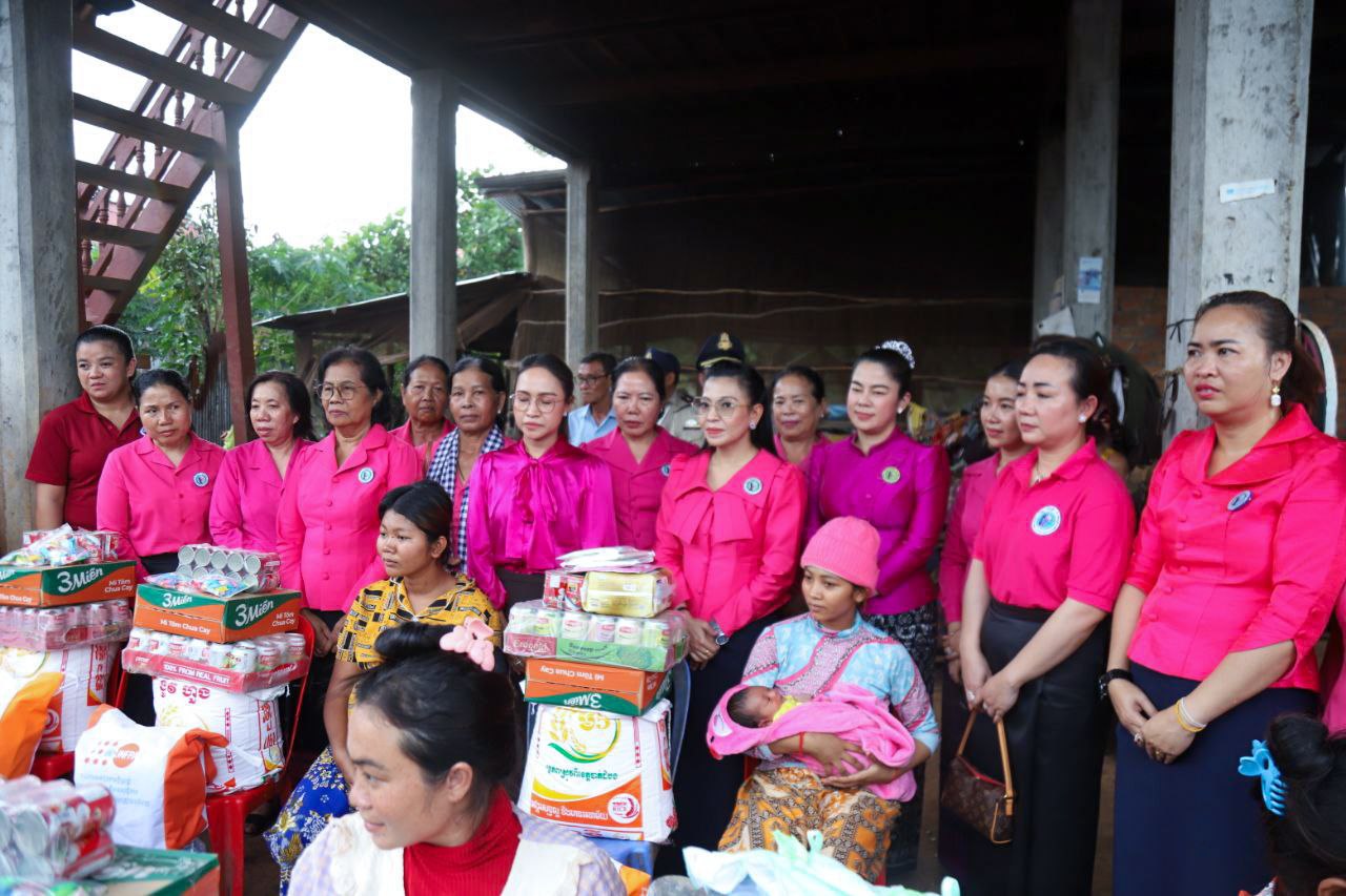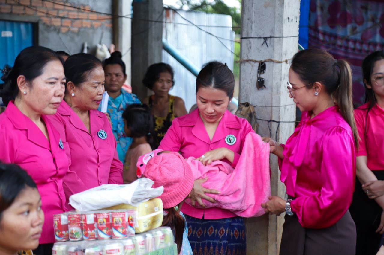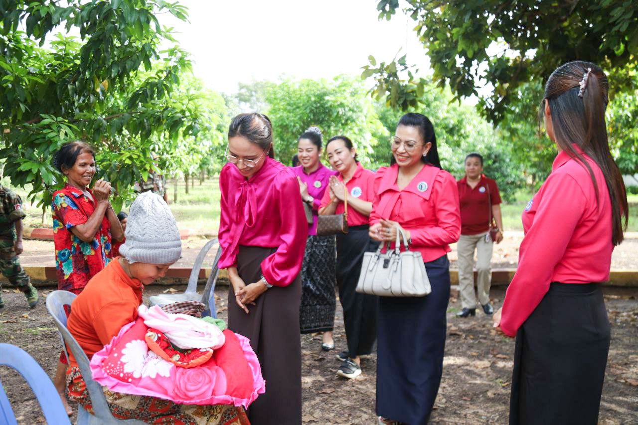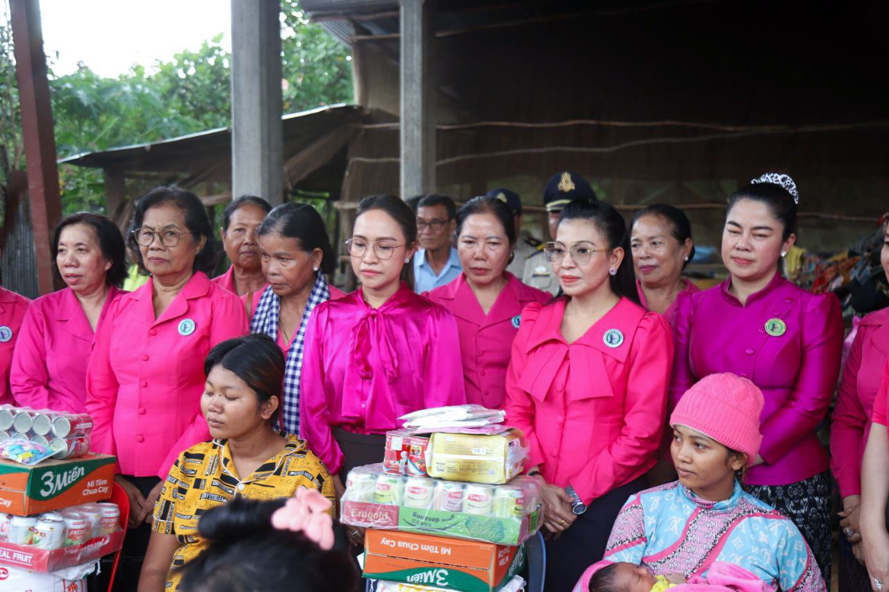 ( ត្បូងឃ្មុំ ): លោកជំទាវ ហេង សំអាន ប៉ែនកុសល្យ ប្រធានកិត្តិយសសាខាសមាគមន៍នារី ដើម្បីសន្តិភាព និងអភិវឌ្ឍន៍ខេត្តត្បូងឃ្មុំ និងលោកជំទាវ នី ចាន់ធីតា អភិបាលរងខេត្ត និងជាប្រធានប្រតិបត្តិ បានដឹកនាំក្រុមការងារចុះសួរសុខទុក្ខ និងនាំយកអំណោយជូនដល់គ្រួសារវីរៈកងទ័ព ចំនួន ៧ គ្រួសារ ដែលកំពុងពពោះ និងទើបសម្រាលកូនរួច ក្នុងស្រុកមេមត់ ខេត្តត្បូងឃ្មុំ កាលពីថ្ងៃទី ២២ ខែតុលា ឆ្នាំ ២០២៥ ។