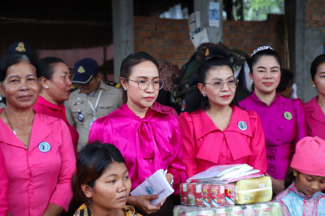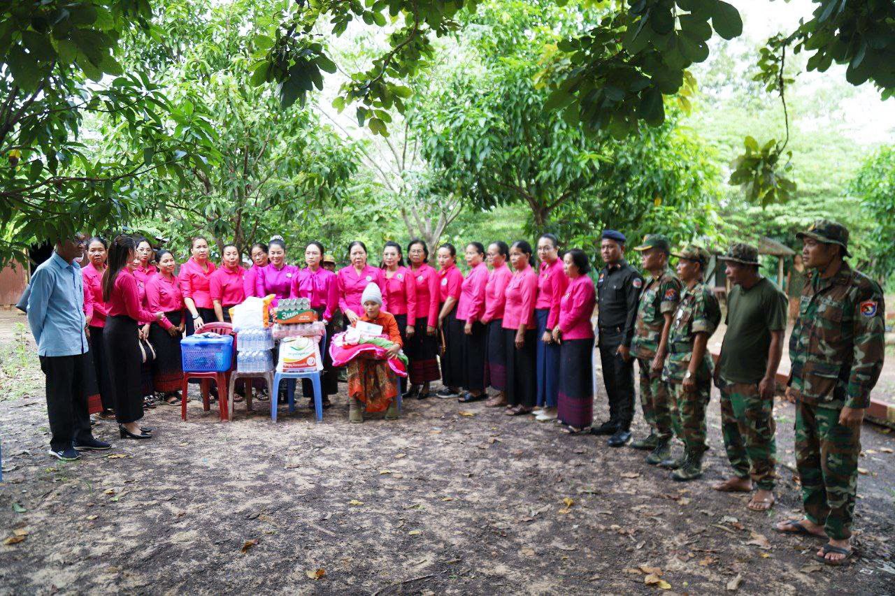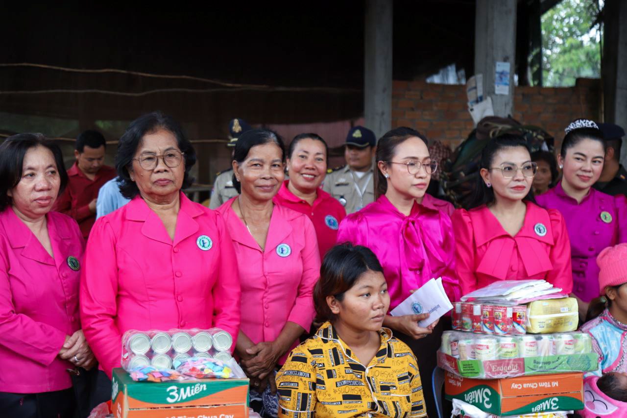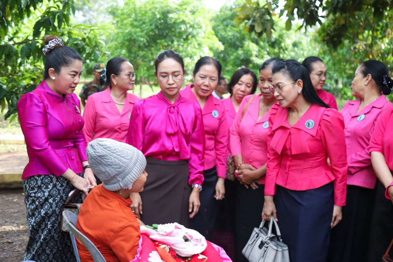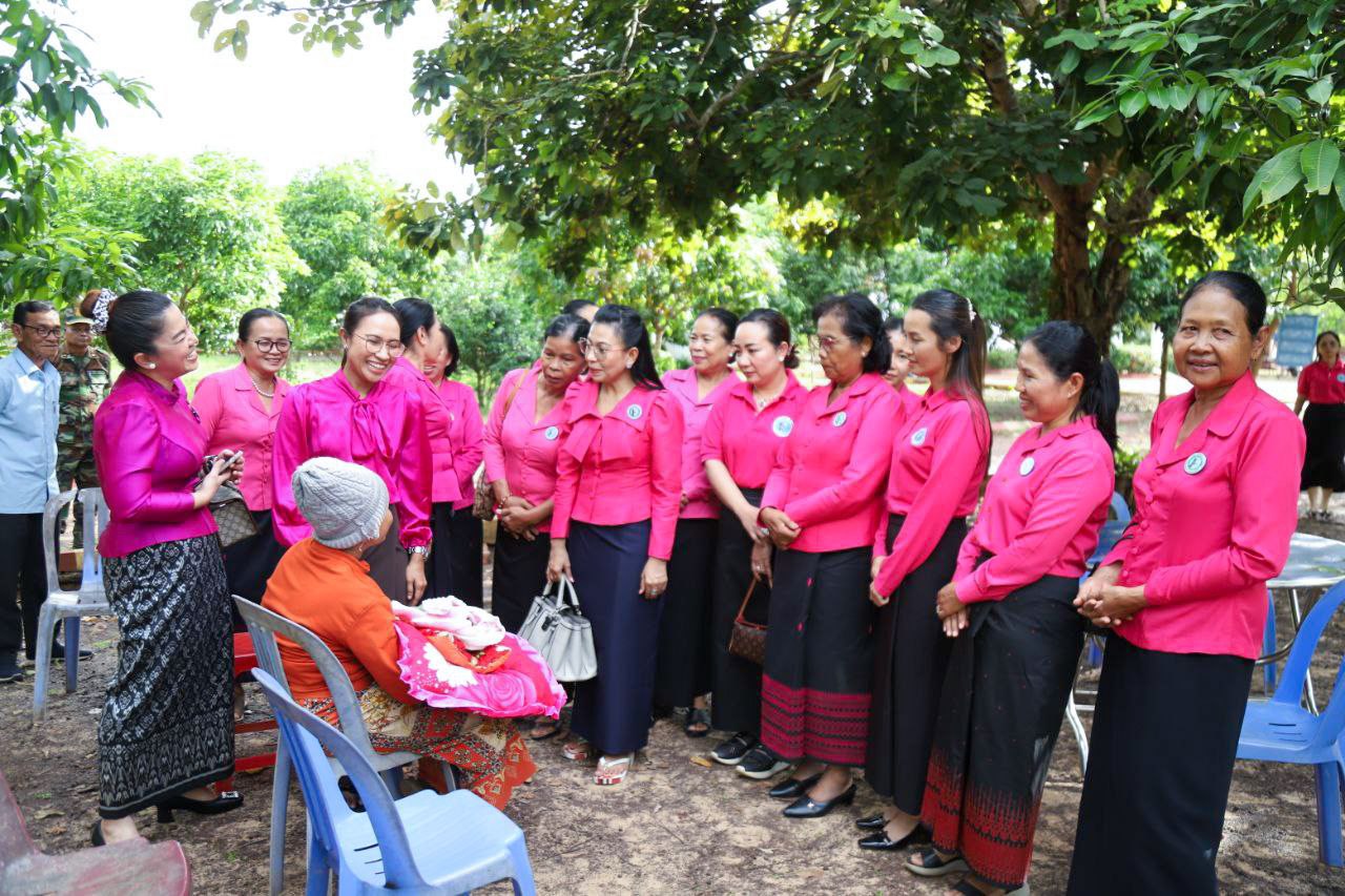 ( ត្បូងឃ្មុំ ): លោកជំទាវ ហេង សំអាន ប៉ែនកុសល្យ ប្រធានកិត្តិយសសាខាសមាគមន៍នារី ដើម្បីសន្តិភាព និងអភិវឌ្ឍន៍ខេត្តត្បូងឃ្មុំ និងលោកជំទាវ នី ចាន់ធីតា អភិបាលរងខេត្ត និងជាប្រធានប្រតិបត្តិ បានដឹកនាំក្រុមការងារចុះសួរសុខទុក្ខ និងនាំយកអំណោយជូនដល់គ្រួសារវីរៈកងទ័ព ចំនួន ៧ គ្រួសារ ដែលកំពុងពពោះ និងទើបសម្រាលកូនរួច ក្នុងស្រុកមេមត់ ខេត្តត្បូងឃ្មុំ កាលពីថ្ងៃទី ២២ ខែតុលា ឆ្នាំ ២០២៥ ។