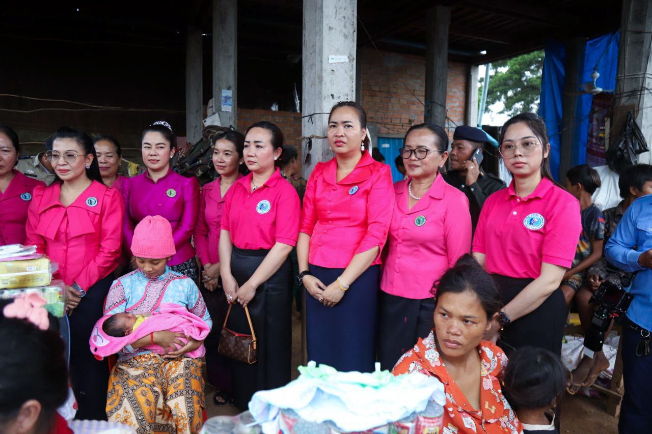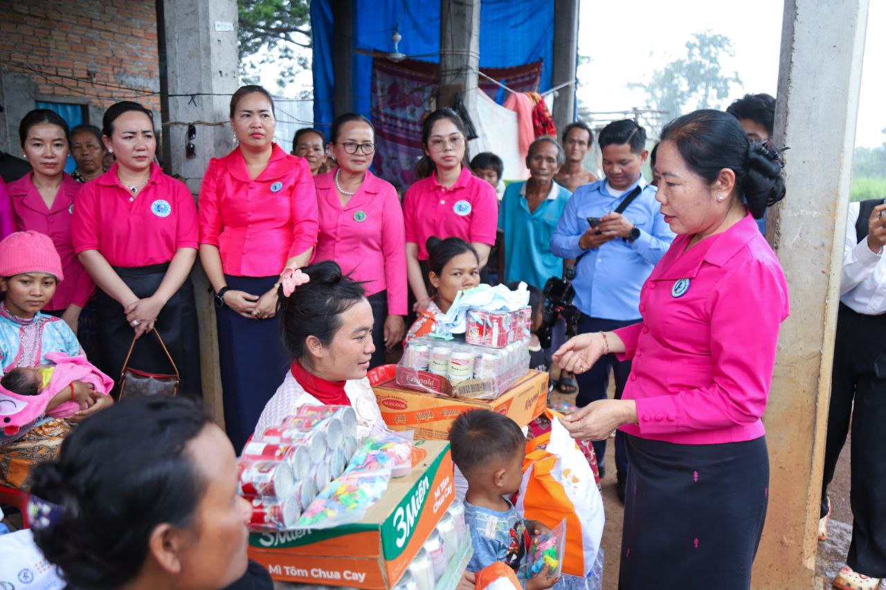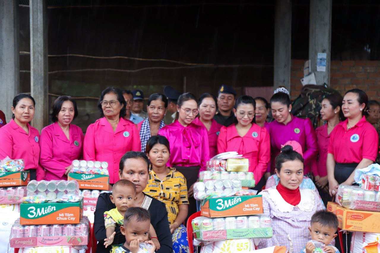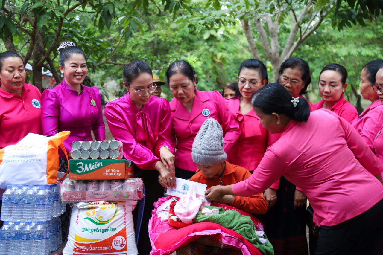( ត្បូងឃ្មុំ ): លោកជំទាវ ហេង សំអាន ប៉ែនកុសល្យ ប្រធានកិត្តិយសសាខាសមាគមន៍នារី ដើម្បីសន្តិភាព និងអភិវឌ្ឍន៍ខេត្តត្បូងឃ្មុំ និងលោកជំទាវ នី ចាន់ធីតា អភិបាលរងខេត្ត និងជាប្រធានប្រតិបត្តិ បានដឹកនាំក្រុមការងារចុះសួរសុខទុក្ខ និងនាំយកអំណោយជូនដល់គ្រួសារវីរៈកងទ័ព ចំនួន ៧ គ្រួសារ ដែលកំពុងពពោះ និងទើបសម្រាលកូនរួច ក្នុងស្រុកមេមត់ ខេត្តត្បូងឃ្មុំ កាលពីថ្ងៃទី ២២ ខែតុលា ឆ្នាំ ២០២៥ ។