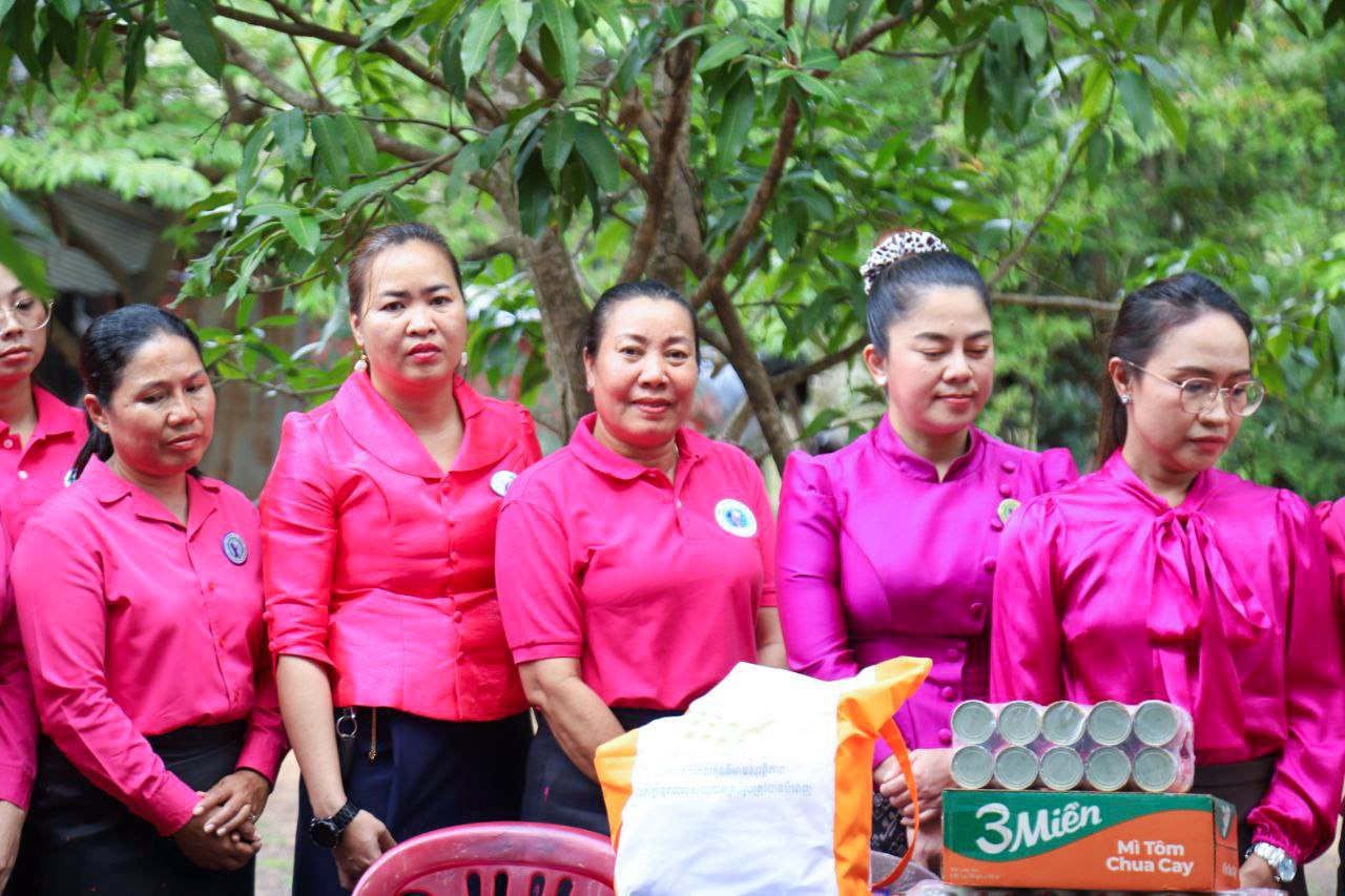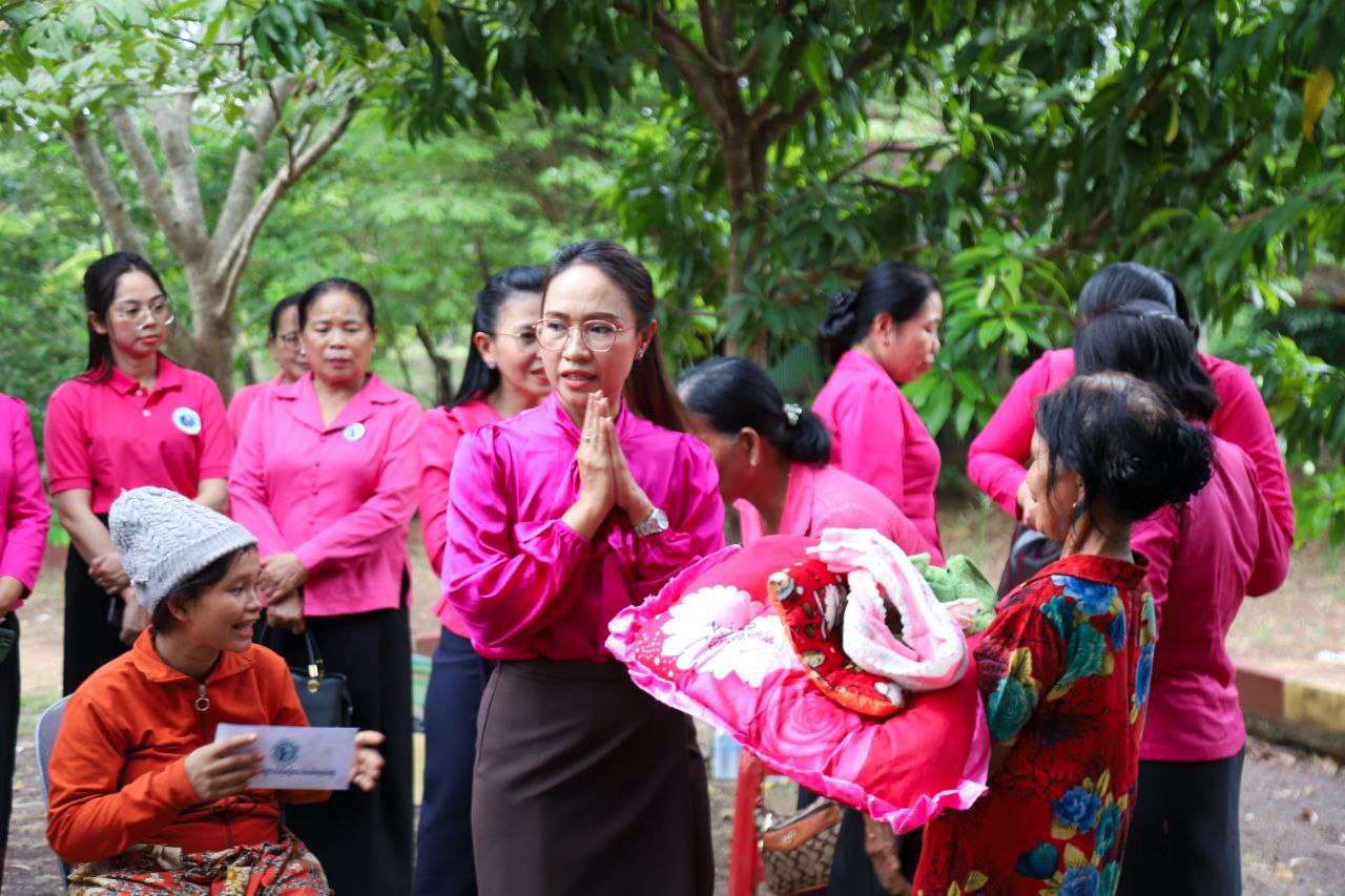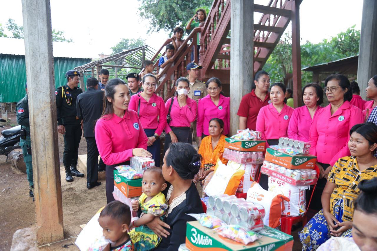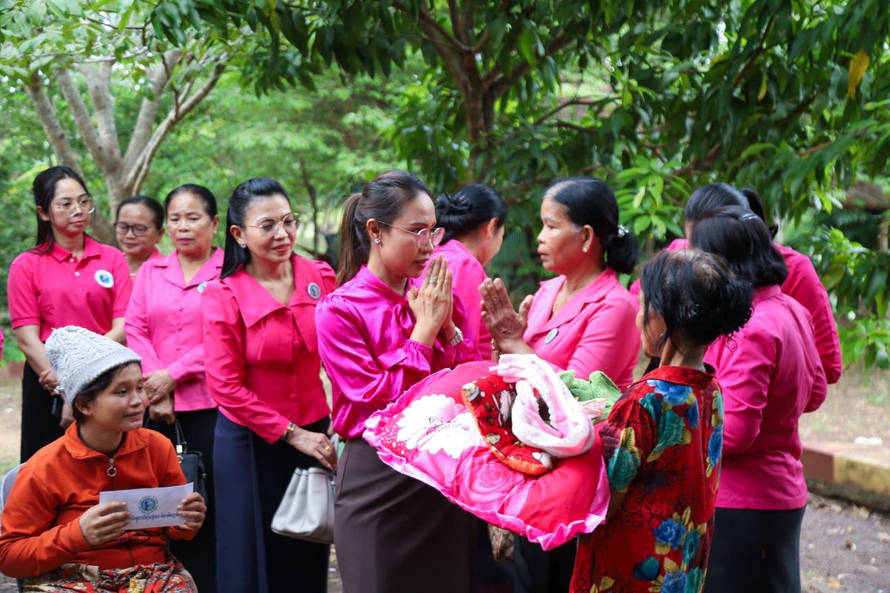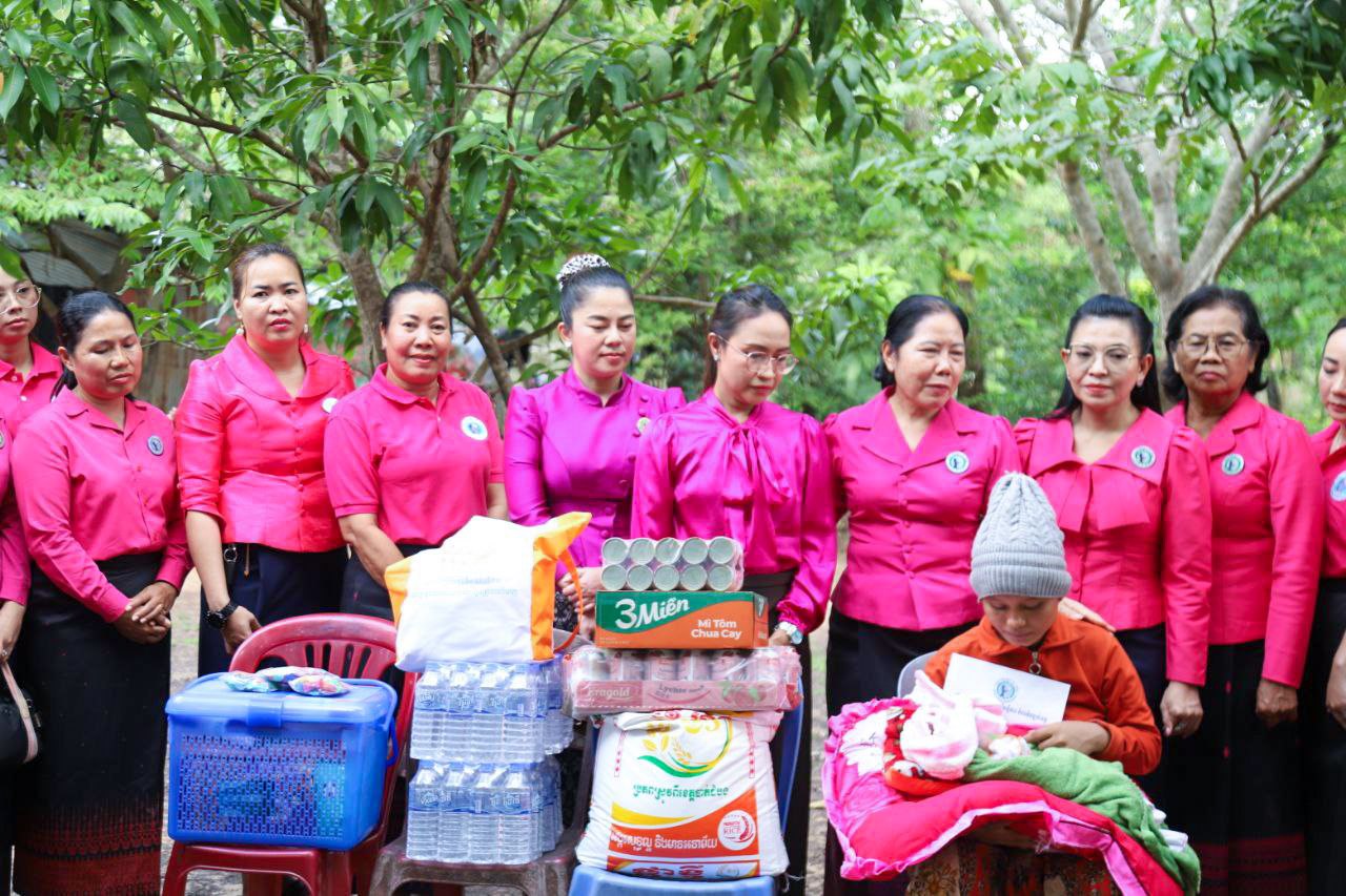 ( ត្បូងឃ្មុំ ): លោកជំទាវ ហេង សំអាន ប៉ែនកុសល្យ ប្រធានកិត្តិយសសាខាសមាគមន៍នារី ដើម្បីសន្តិភាព និងអភិវឌ្ឍន៍ខេត្តត្បូងឃ្មុំ និងលោកជំទាវ នី ចាន់ធីតា អភិបាលរងខេត្ត និងជាប្រធានប្រតិបត្តិ បានដឹកនាំក្រុមការងារចុះសួរសុខទុក្ខ និងនាំយកអំណោយជូនដល់គ្រួសារវីរៈកងទ័ព ចំនួន ៧ គ្រួសារ ដែលកំពុងពពោះ និងទើបសម្រាលកូនរួច ក្នុងស្រុកមេមត់ ខេត្តត្បូងឃ្មុំ កាលពីថ្ងៃទី ២២ ខែតុលា ឆ្នាំ ២០២៥ ។