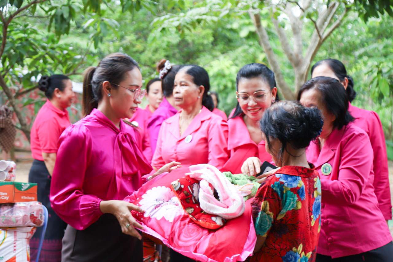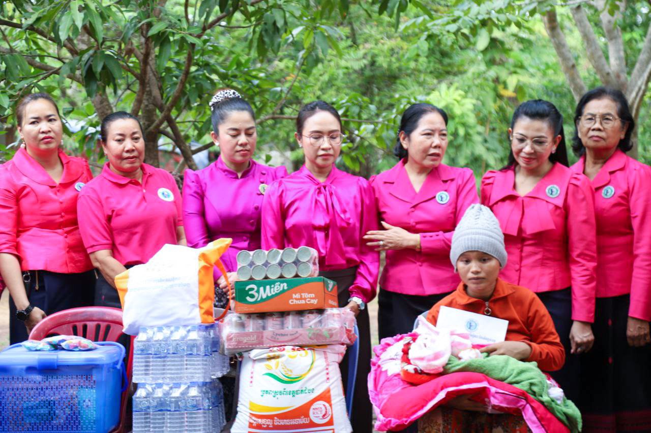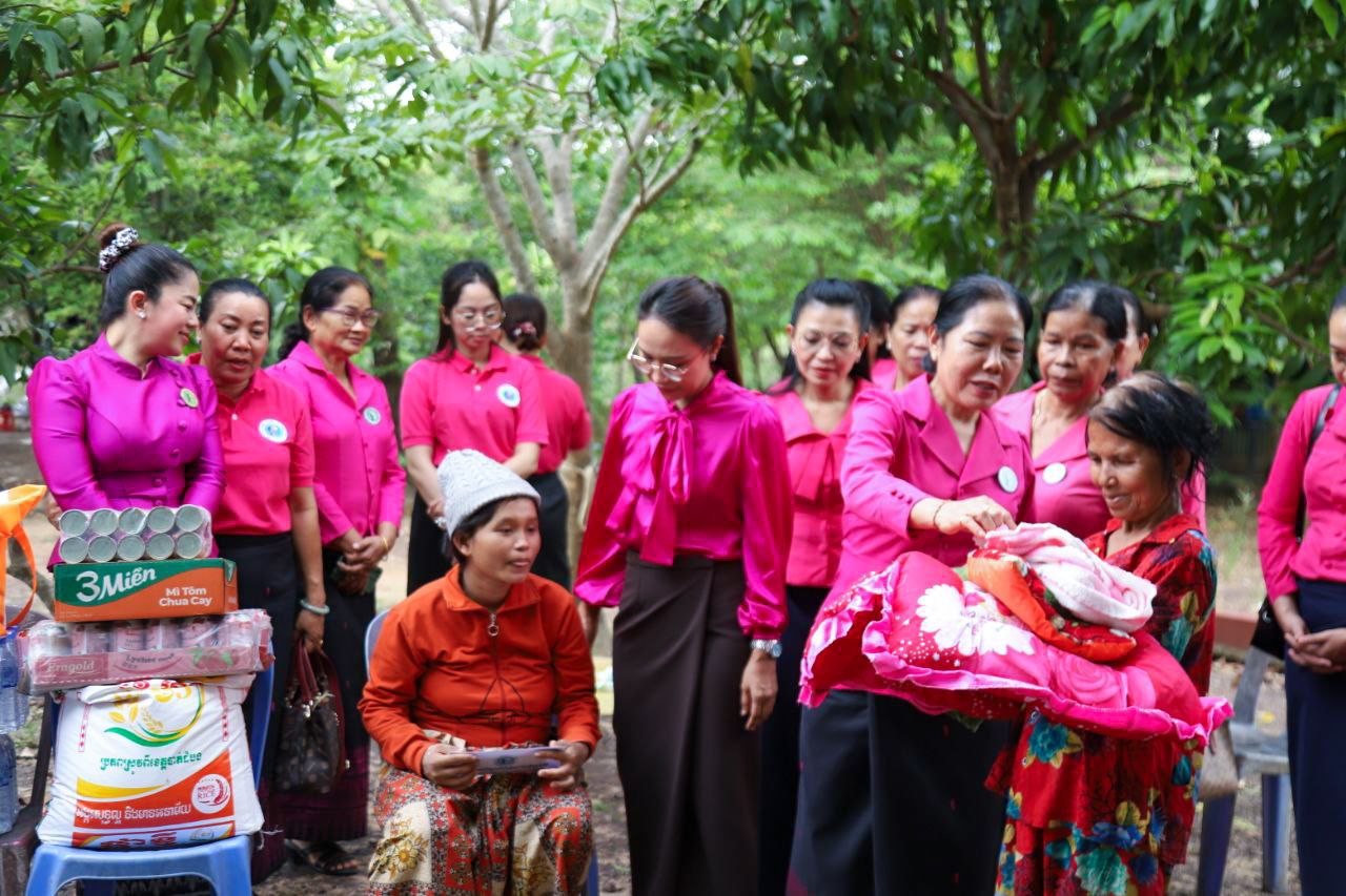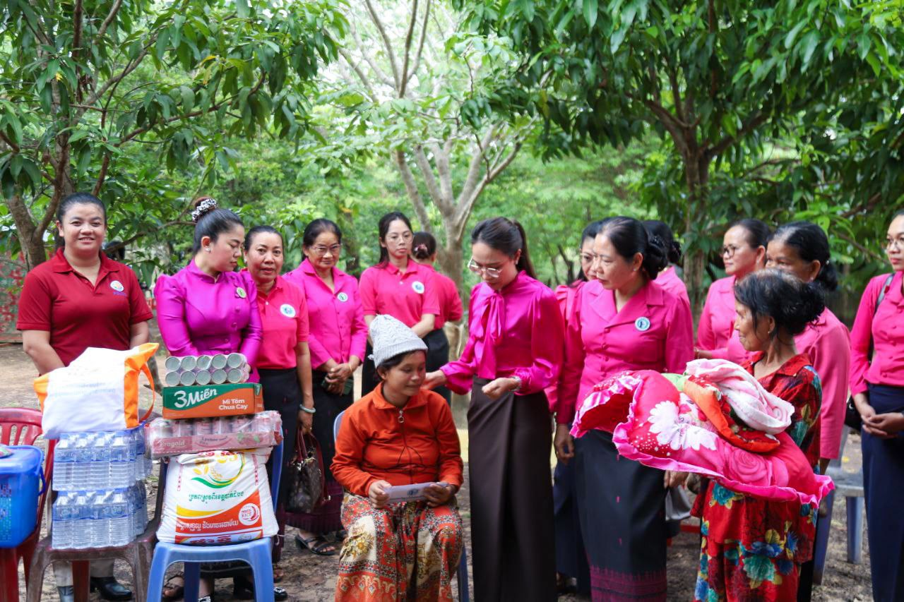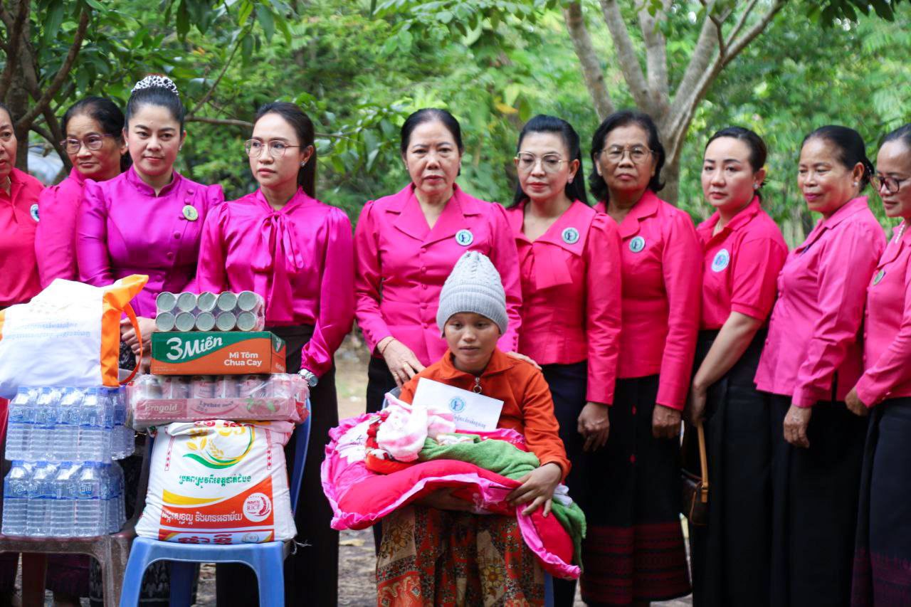 ( ត្បូងឃ្មុំ ): លោកជំទាវ ហេង សំអាន ប៉ែនកុសល្យ ប្រធានកិត្តិយសសាខាសមាគមន៍នារី ដើម្បីសន្តិភាព និងអភិវឌ្ឍន៍ខេត្តត្បូងឃ្មុំ និងលោកជំទាវ នី ចាន់ធីតា អភិបាលរងខេត្ត និងជាប្រធានប្រតិបត្តិ បានដឹកនាំក្រុមការងារចុះសួរសុខទុក្ខ និងនាំយកអំណោយជូនដល់គ្រួសារវីរៈកងទ័ព ចំនួន ៧ គ្រួសារ ដែលកំពុងពពោះ និងទើបសម្រាលកូនរួច ក្នុងស្រុកមេមត់ ខេត្តត្បូងឃ្មុំ កាលពីថ្ងៃទី ២២ ខែតុលា ឆ្នាំ ២០២៥ ។