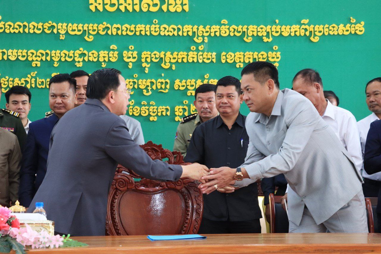 ក្នុងឱកាសនោះ ឯកឧត្តមបណ្ឌិតរដ្ឋមន្ត្រី បានស្វាគមន៍យ៉ាងកក់ក្តៅចំពោះបងប្អូនពលករ និងបានលើកទឹកចិត្តឱ្យបងប្អូនស្វែងរកការងារធ្វើនៅក្នុងស្រុកវិញ ដោយបច្ចុប្បន្ន ប្រទេសកម្ពុជា ជាពិសេសក្នុងខេត្តត្បូងឃ្មុំ មានតម្រូវការកម្លាំងពលកម្មជំនាញជាច្រើន នៅតាមបណ្តាក្រុមហ៊ុន និងសហគ្រាសនានា ។