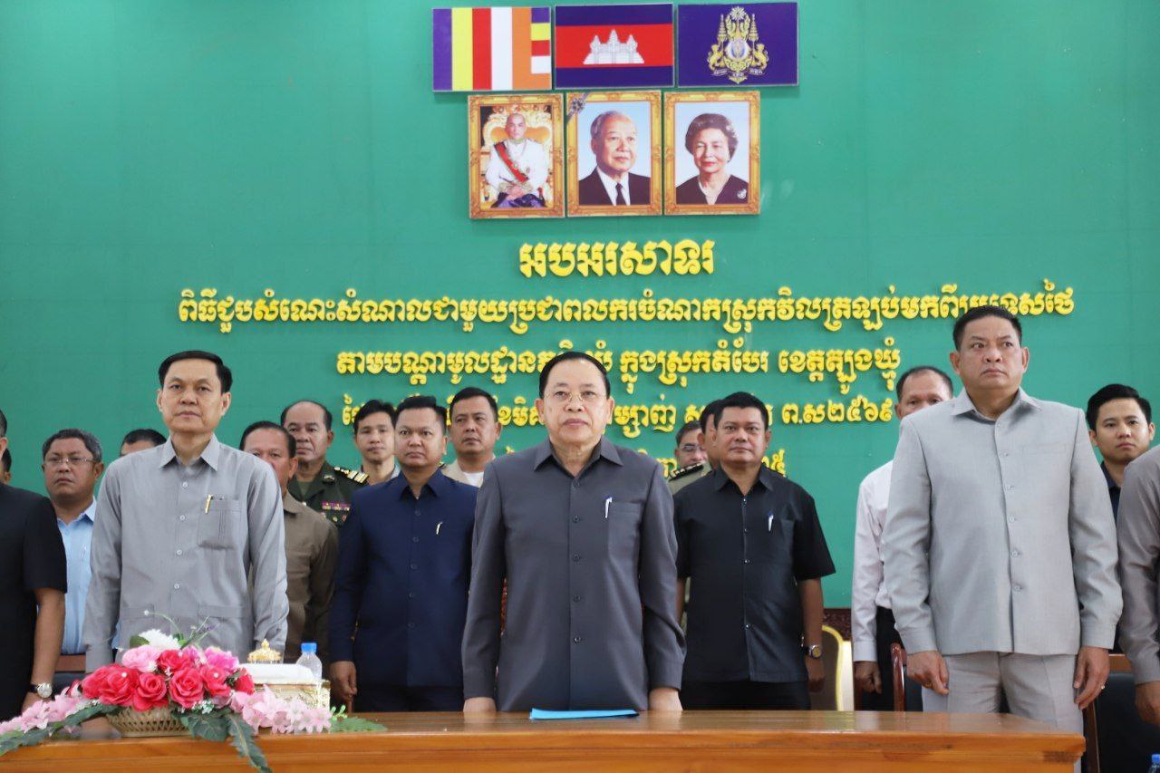 (ខេត្តត្បូងឃ្មុំ): ឯកឧត្តមបណ្ឌិត ចាយ បូរិន រដ្ឋមន្ត្រីក្រសួងធម្មការ និងសាសនា ជាអនុប្រធានក្រុមការងាររាជរដ្ឋាភិបាលចុះមូលដ្ឋានខេត្តត្បូងឃ្មុំ អមដំណើរដោយឯកឧត្តម ប៉ែន កុសល្យ អភិបាលនៃគណៈអភិបាលខេត្តត្បូងឃ្មុំ បានអញ្ជើញចុះជួបសំណេះសំណាល និងសួរសុខទុក្ខបងប្អូនប្រជាពលករចំណាកស្រុកដែលទើបវិលត្រឡប់មកពីប្រទេសថៃ និងកំពុងរស់នៅក្នុងស្រុកតំបែរ ខេត្តត្បូងឃ្មុំ កាកពីថ្ងៃទី ២២ ខែវិច្ឆិកា ឆ្នាំ ២០២៥ ។