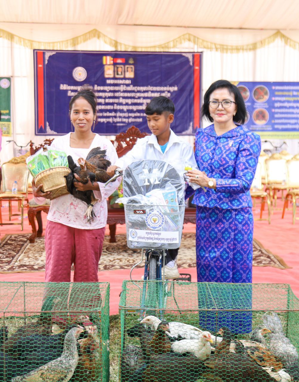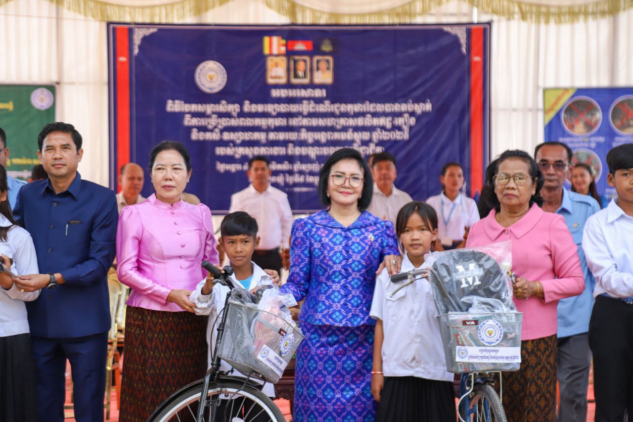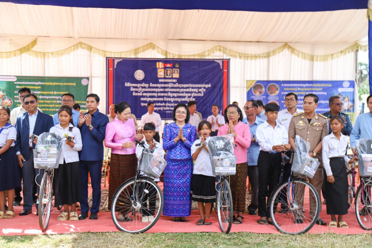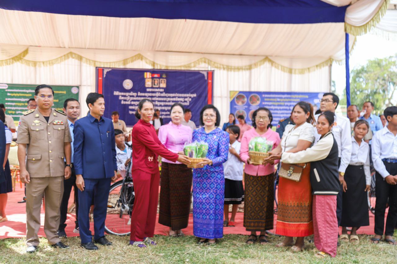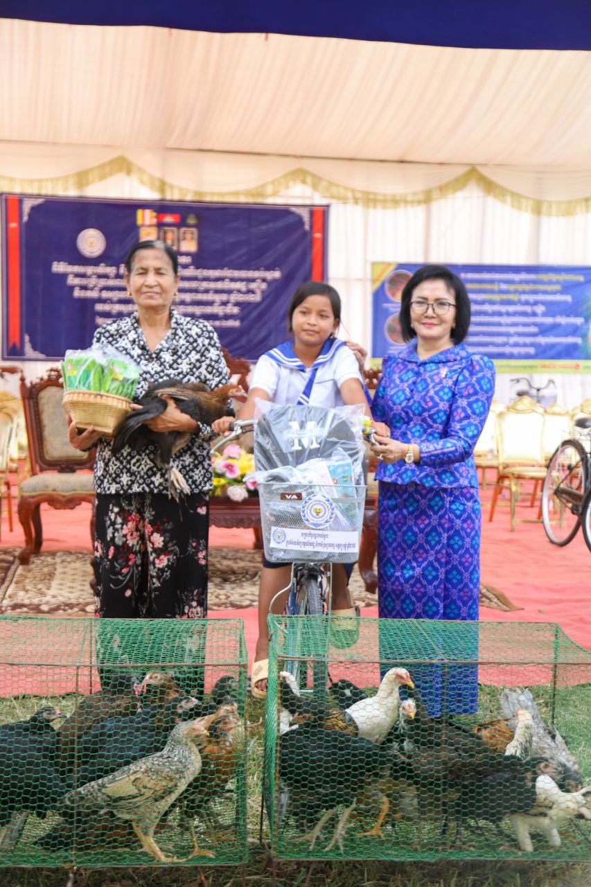 លោកជំទាវបាននាំយកសម្ភារសិក្សា សម្លៀកបំពាក់ កាបូប ស្បែកជើង និងកង់ (មធ្យោបាយធ្វើដំណើរ) ចែកជូនដល់កុមារ ដើម្បីជំរុញឱ្យពួកគេ មានឱកាសបន្តការសិក្សាដូចកុមារដទៃទៀត ទន្ទឹមនឹងនេះដែរ ក្រុមគ្រួសារកុមារ ក៏ទទួលបានពូជសត្វ(មាន់) និងពូជបន្លែ ដើម្បីបង្កើនមុខរបរ និងប្រាក់ចំណូលក្នុងគ្រួសារ សំដៅកាត់បន្ថយភាពក្រីក្រ និងទប់ស្កាត់ការរុញកុមារឱ្យចូលធ្វើការងារមុនអាយុ ឲ្យទទួលបានជោកជ័យ ៕