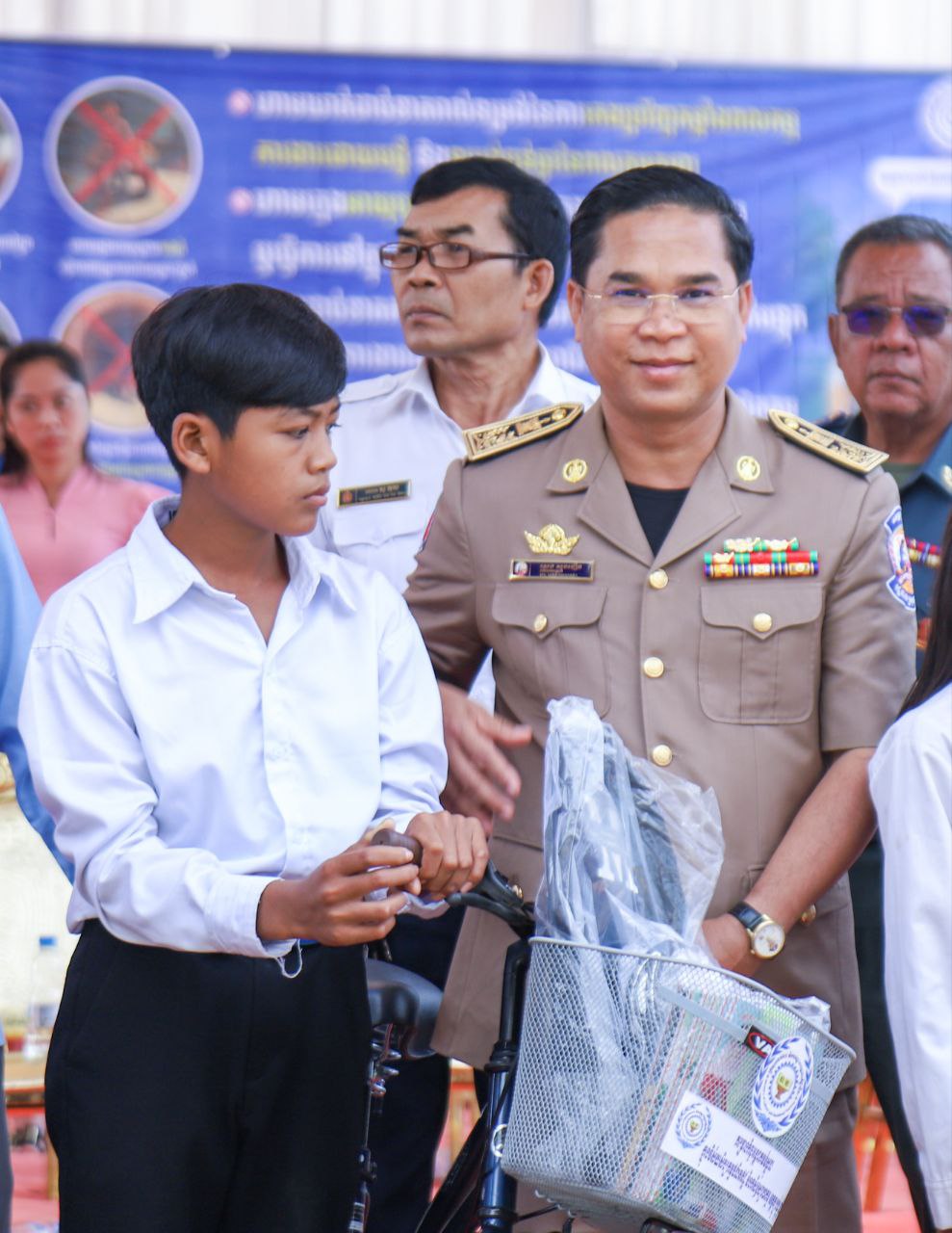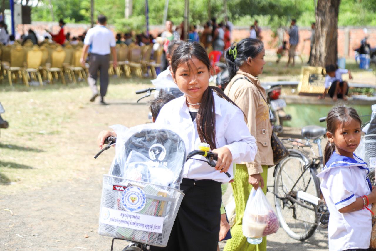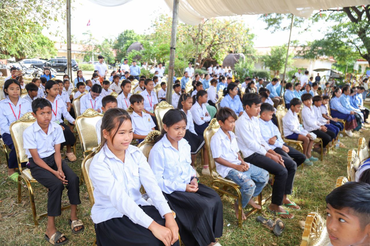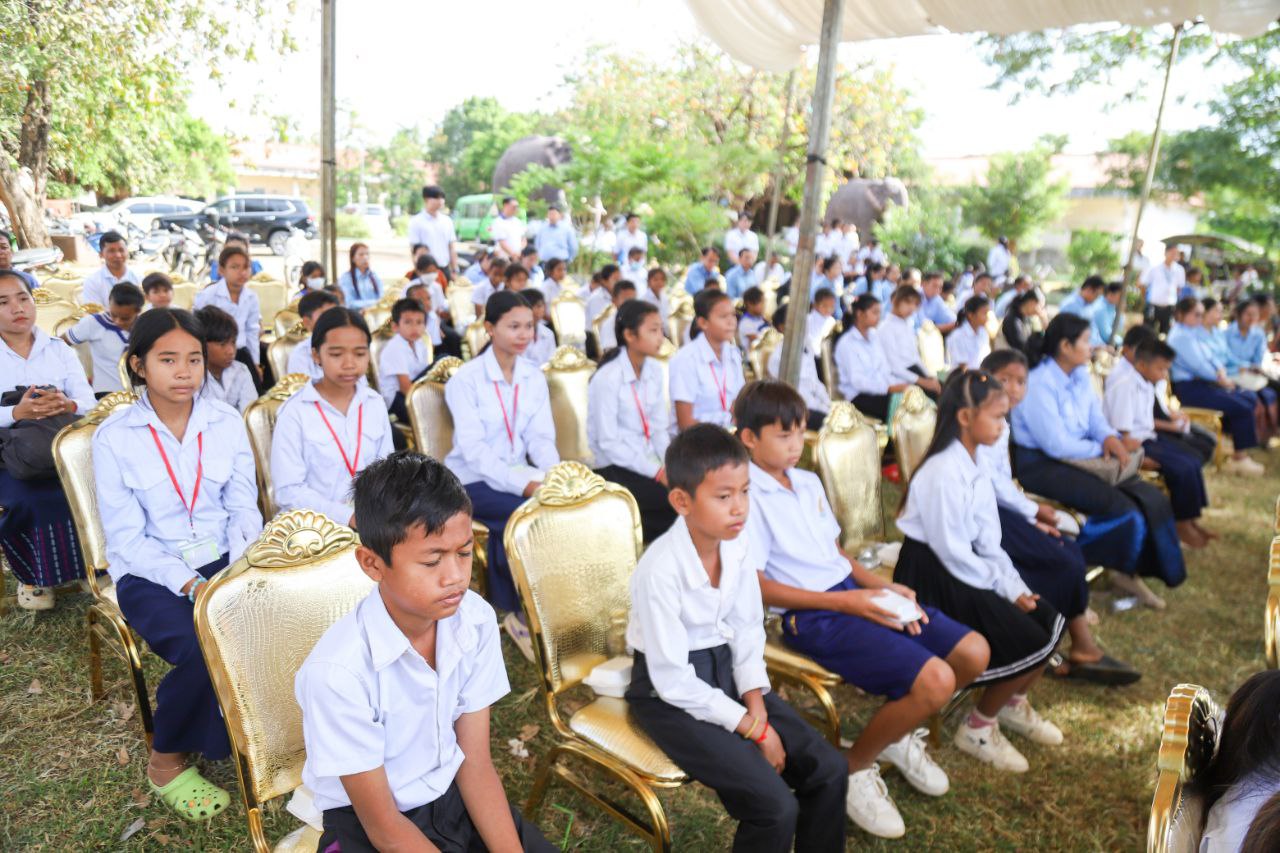លោកជំទាវបាននាំយកសម្ភារសិក្សា សម្លៀកបំពាក់ កាបូប ស្បែកជើង និងកង់ (មធ្យោបាយធ្វើដំណើរ) ចែកជូនដល់កុមារ ដើម្បីជំរុញឱ្យពួកគេ មានឱកាសបន្តការសិក្សាដូចកុមារដទៃទៀត ទន្ទឹមនឹងនេះដែរ ក្រុមគ្រួសារកុមារ ក៏ទទួលបានពូជសត្វ(មាន់) និងពូជបន្លែ ដើម្បីបង្កើនមុខរបរ និងប្រាក់ចំណូលក្នុងគ្រួសារ សំដៅកាត់បន្ថយភាពក្រីក្រ និងទប់ស្កាត់ការរុញកុមារឱ្យចូលធ្វើការងារមុនអាយុ ឲ្យទទួលបានជោកជ័យ ៕