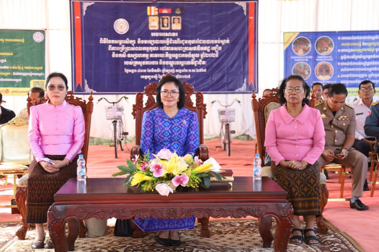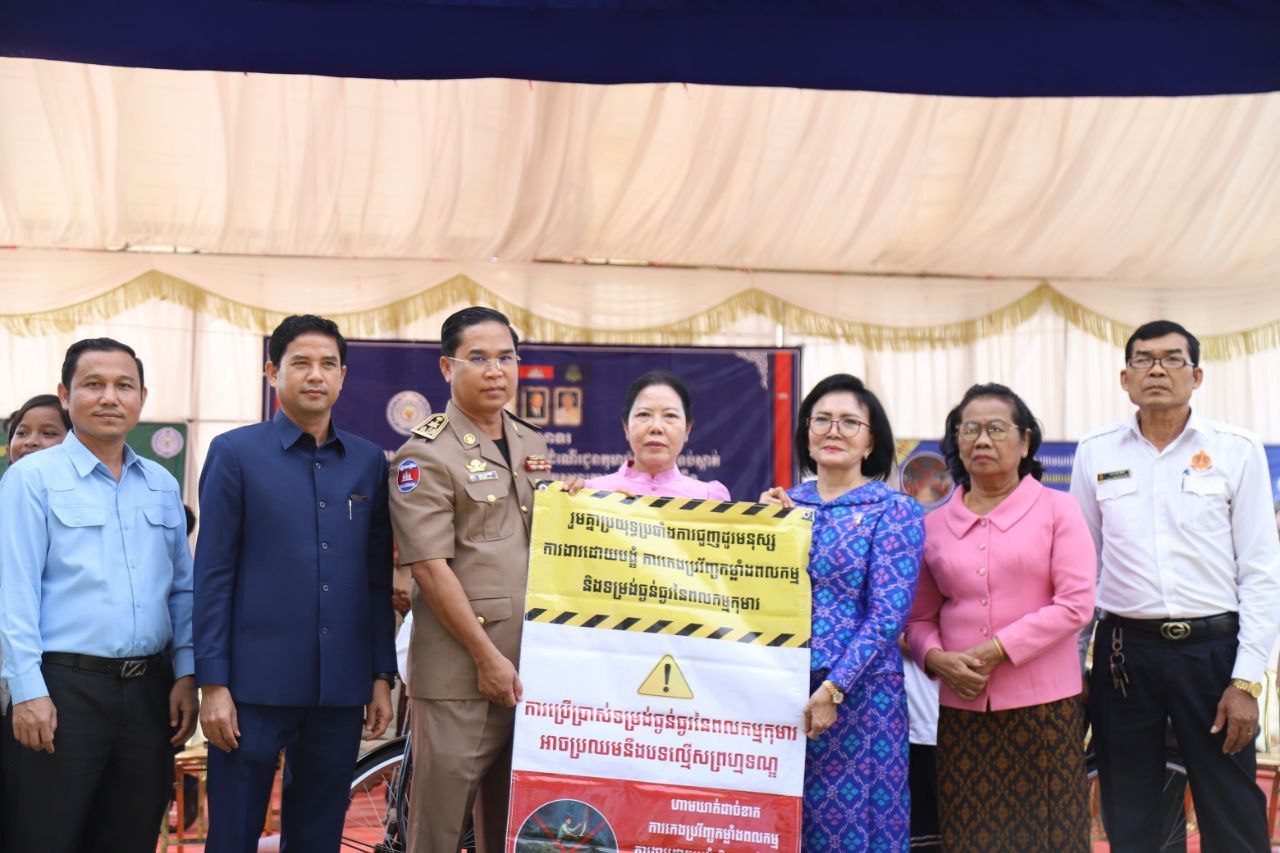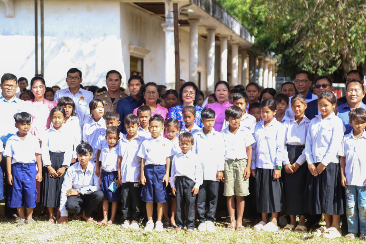 (ត្បូងឃ្មុំ): លោកជំទាវ ស៊ើង សរសុចិត្តា រដ្ឋលេខាធិការក្រសួងការងារ និងបណ្ដុះបណ្ដាលវិជ្ជាជីវៈ លោកជំទាវ នី ចាន់ធីតា អភិបាលរងខេត្តត្បូងឃ្មុំ ជាប្រធានគណៈកម្មការប្រឆាំងពលកម្មកុមារខេត្ត និងលោកជំទាវ ឡេង សុខា សមាជិកក្រុមប្រឹក្សាខេត្ត និងជាប្រធានគណៈកម្មាធិការពិគ្រោះយោបល់កិច្ចការស្រ្តី និងកុមារខេត្ត អញ្ជើញចែកសម្ភារ:សិក្សា និងមធ្យោបាយធ្វើដំណើរដល់កុមារ ដើម្បីទប់ស្កាត់ពីការប្រើប្រាស់ពលកម្មកុមារ នៅតាមសហគ្រាសផលិតឥដ្ឋ-ក្បឿង និងកសិ-ឧស្សាហកម្ម តាមរយៈកិច្ចអន្តរាគមន៍ស្នូល ឆ្នាំ ២០២៥ របស់ក្រសួងការងារ និងបណ្ដុះបណ្ដាលវិជ្ជាជីវៈកាលពីថ្ងៃទី ៩ ខែធ្នូ ឆ្នាំ ២០២៥ នៅបរិវេណសាលាបឋមសិក្សា ហ៊ុន សែន ទួលវិហារ ស្ថិតនៅភូមិទួលវិហារ ឃុំជីរោទ៍ទី ២ ស្រុកត្បូងឃ្មុំ ខេត្តត្បូងឃ្មុំ ។