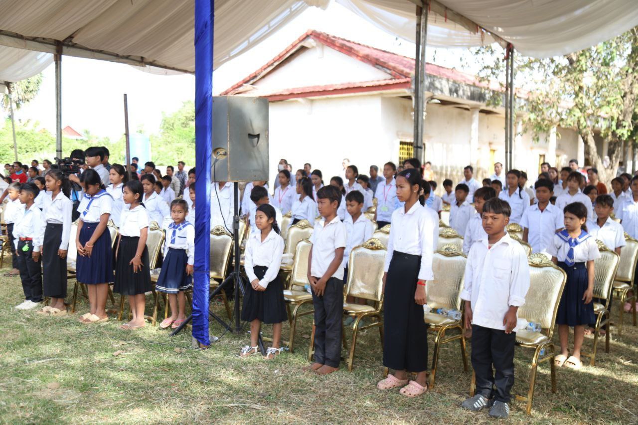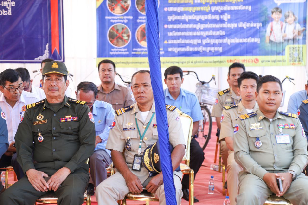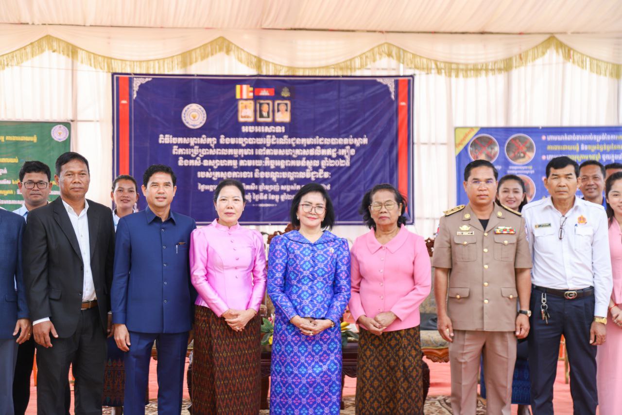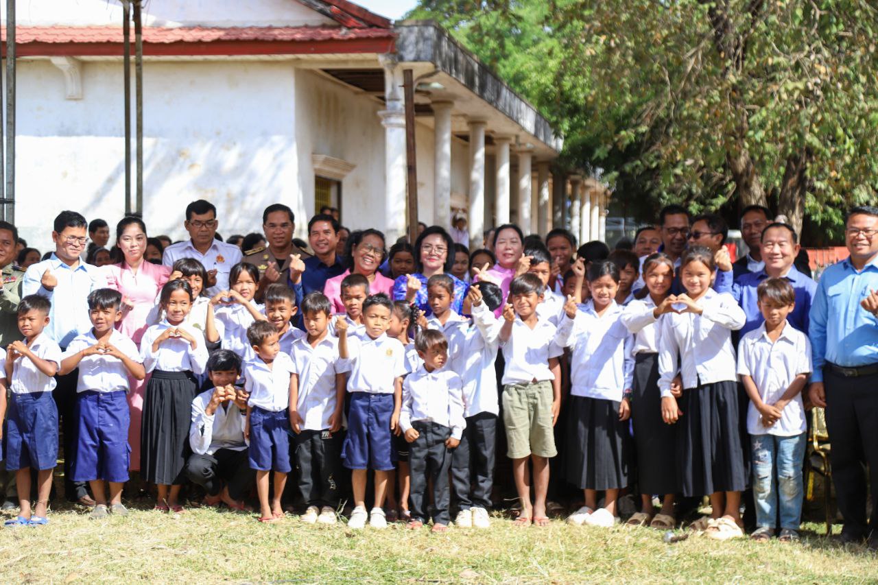 (ត្បូងឃ្មុំ): លោកជំទាវ ស៊ើង សរសុចិត្តា រដ្ឋលេខាធិការក្រសួងការងារ និងបណ្ដុះបណ្ដាលវិជ្ជាជីវៈ លោកជំទាវ នី ចាន់ធីតា អភិបាលរងខេត្តត្បូងឃ្មុំ ជាប្រធានគណៈកម្មការប្រឆាំងពលកម្មកុមារខេត្ត និងលោកជំទាវ ឡេង សុខា សមាជិកក្រុមប្រឹក្សាខេត្ត និងជាប្រធានគណៈកម្មាធិការពិគ្រោះយោបល់កិច្ចការស្រ្តី និងកុមារខេត្ត អញ្ជើញចែកសម្ភារ:សិក្សា និងមធ្យោបាយធ្វើដំណើរដល់កុមារ ដើម្បីទប់ស្កាត់ពីការប្រើប្រាស់ពលកម្មកុមារ នៅតាមសហគ្រាសផលិតឥដ្ឋ-ក្បឿង និងកសិ-ឧស្សាហកម្ម តាមរយៈកិច្ចអន្តរាគមន៍ស្នូល ឆ្នាំ ២០២៥ របស់ក្រសួងការងារ និងបណ្ដុះបណ្ដាលវិជ្ជាជីវៈកាលពីថ្ងៃទី ៩ ខែធ្នូ ឆ្នាំ ២០២៥ នៅបរិវេណសាលាបឋមសិក្សា ហ៊ុន សែន ទួលវិហារ ស្ថិតនៅភូមិទួលវិហារ ឃុំជីរោទ៍ទី ២ ស្រុកត្បូងឃ្មុំ ខេត្តត្បូងឃ្មុំ ។