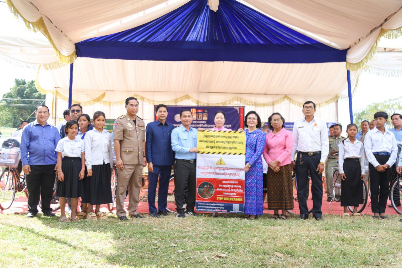 ក្រសួងការងារ និងរដ្ឋបាលខេត្តត្បូងឃ្មុំ ចុះចែកសម្ភារសិក្សា និងកង់ដល់កុមារ នៅស្រុកត្បូងឃ្មុំ ពញាក្រែក ក្រូចឆ្មារ និងអូររាំងឪ ដើម្បីទប់ស្កាត់លុបបំបាត់ពលកម្មកុមារក្នុងវិស័យឥដ្ឋ-ក្បឿង និងកសិ-ឧស្សាហកម្ម