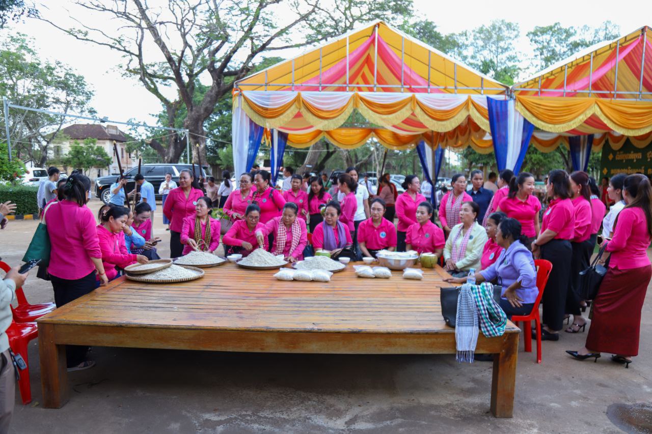 (ត្បូងឃ្មុំ): សាខាសមាគមនារីខេត្តត្បូងឃ្មុំ បានអញ្ជើញរៀបចំពិធីទិញស្រូវធ្វើអំបុកវិចខ្ចប់ ជូនទៅវីរកងទ័ពជួរមុខ និងជនភៀសសឹក ពីការឈ្លានពានរបស់សៀម មកលើកម្ពុជា នៅបរិវេណវត្តមង្គលនិវេសន៍ (កណ្ដោលជ្រុំ) ស្រុកពញាក្រែក ខេត្តត្បូងឃ្មុំ កាលពីរសៀលថ្ងៃទី ១២ ខែធ្នូ ឆ្នាំ ២០២៥ ។