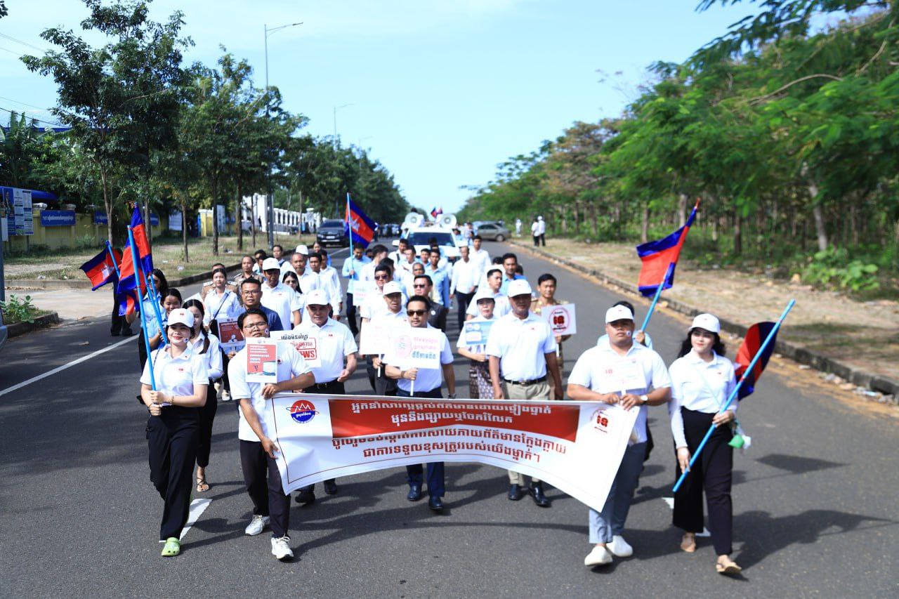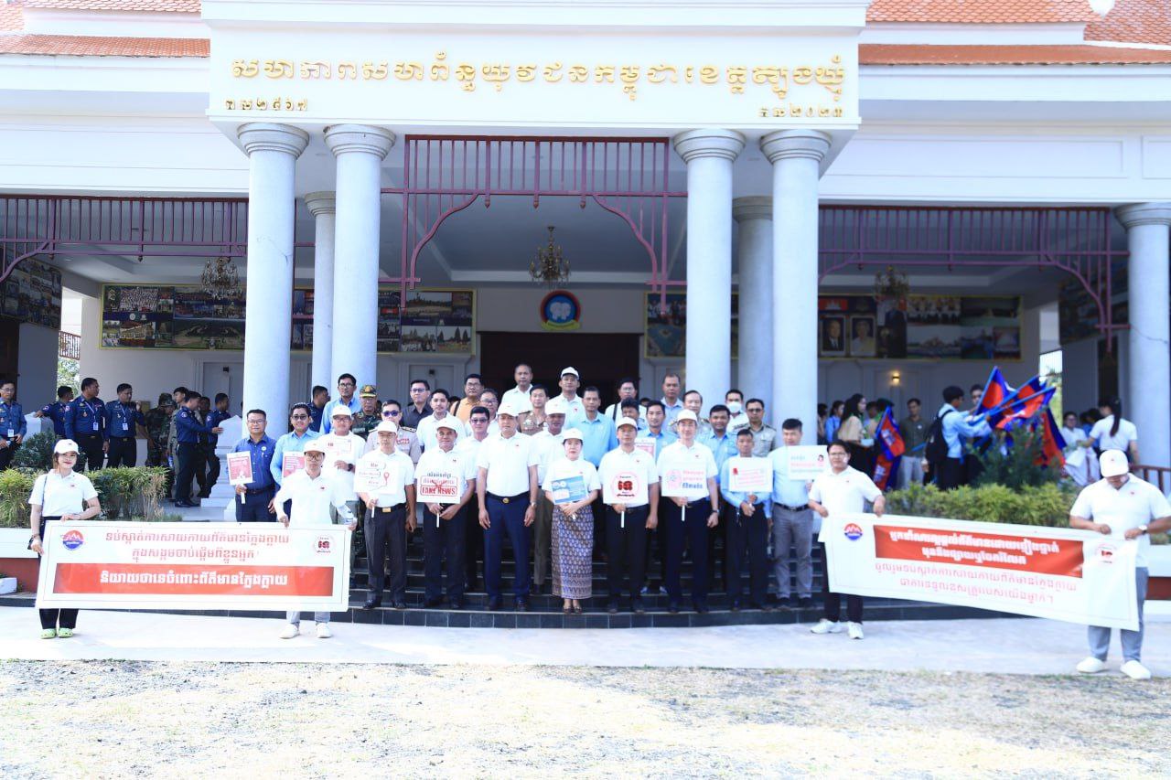 (ត្បូងឃ្មុំ): ឯកឧត្តម ងឿន ច័ន្ទលីនប៉ូឡែន អនុរដ្ឋលេខាធិការក្រសួងព័ត៌មាន តំណាងដ៏ខ្ពង់ខ្ពស់ ឯកឧត្តម នេត្រ ភក្រ្តា រដ្ឋមន្ត្រីក្រសួងព័ត៌មាន បានសហការជាមួយមន្ទីរព័ត៌មានខេត្តត្បូងឃ្មុំ បើកយុទ្ធប្រឆាំងនឹងព័ត៌មានក្លែងក្លាយ នាព្រឹកថ្ងៃទី ២៣ ខែធ្នូ ឆ្នាំ ២០២៥ នៅអគារតេជោបូពា៌ខេត្តត្បូងឃ្មុំ និងដង្ហែក្បួនតាមទីសាធារណៈក្រោមពាក្យស្លោក «និយាយថា ទេចំពោះព័ត៌មានក្លែងក្លាយ» (Say No to Fake News) ដើម្បីបញ្ជ្រាបការយល់ដឹងដល់ពលរដ្ឋ ឱ្យប្រុងប្រយ័ត្នពីគ្រោះថ្នាក់ នៃព័ត៌មានក្លែងក្លាយក្នុងសង្គម ។