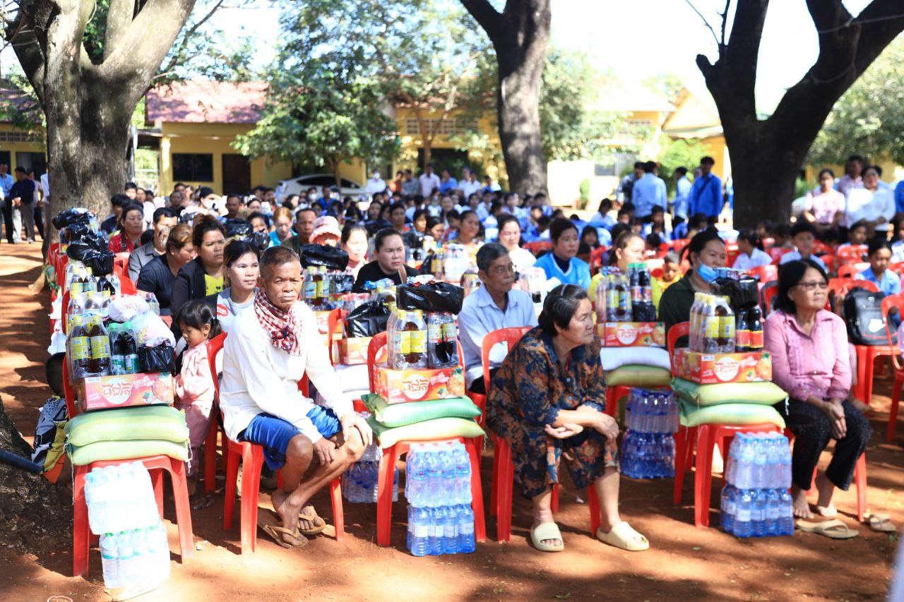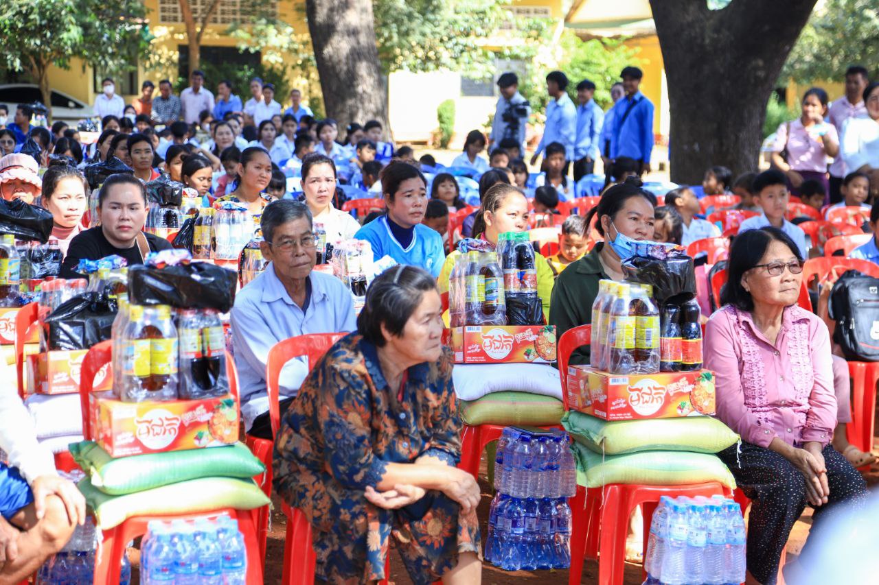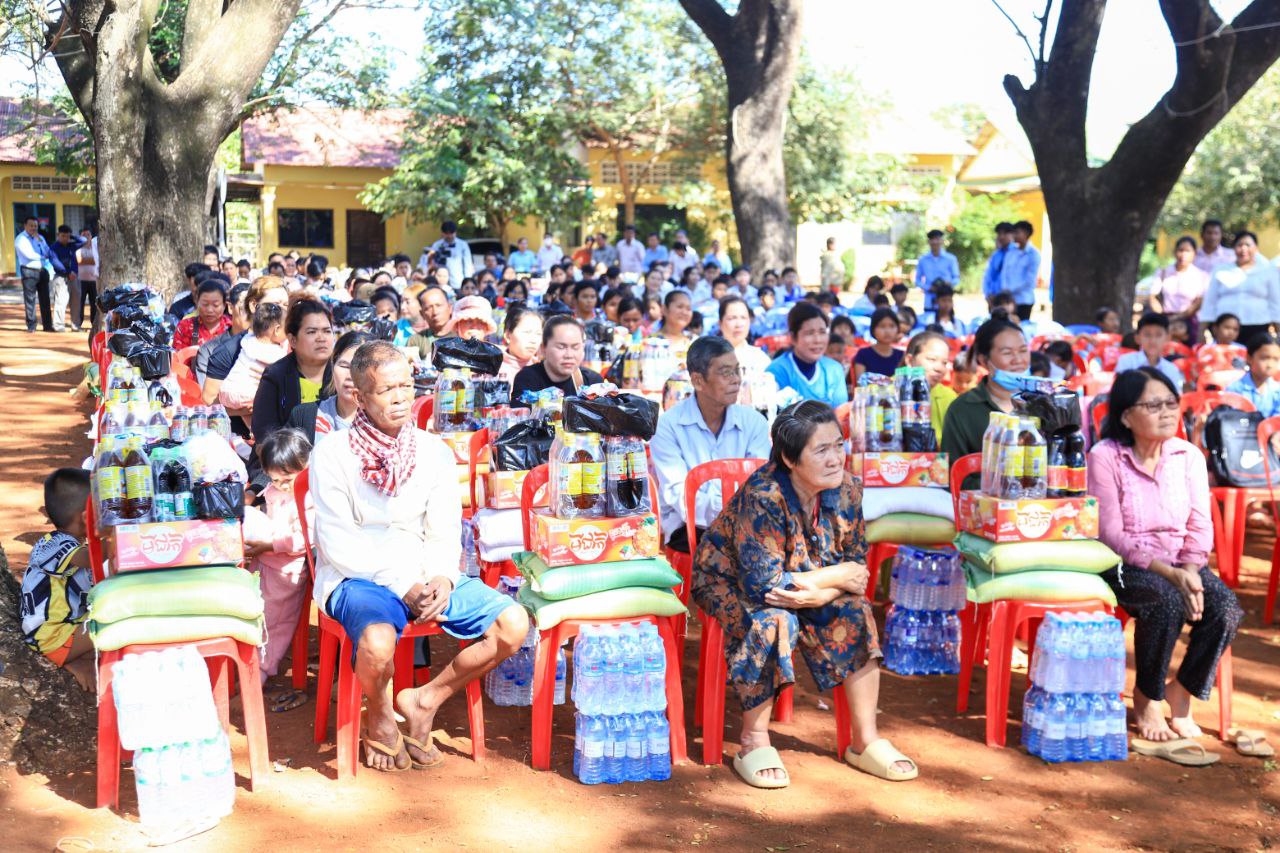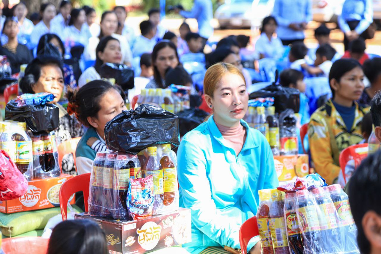 អំណោយទាំងនោះរួមមាន អង្ករ ទឹកស៉ីអ៉ីវ ទឹកត្រី ត្រីខ និងថវិការមួយចំនួនចំនួន ហើយចំពោះសិស្សានុសិស្សភៀសសឹក ក្នុងម្នាក់ៗ ទទួលាបាន សម្ភារសិក្សា និងសម្លៀកបំពាក់កីឡា នំចំណី ភេសជ្ជៈ ទឹកដោះគោ រួមជាមួយនឹងថវិកាឧបត្ថម្ភចំនួន ៤ ម៉ឺនរៀល ទុកជាការសម្រាលបន្ទុក ក្នុងអំឡុងពេលស្នាក់នៅបណ្តោះអាសន្ននេះ ។