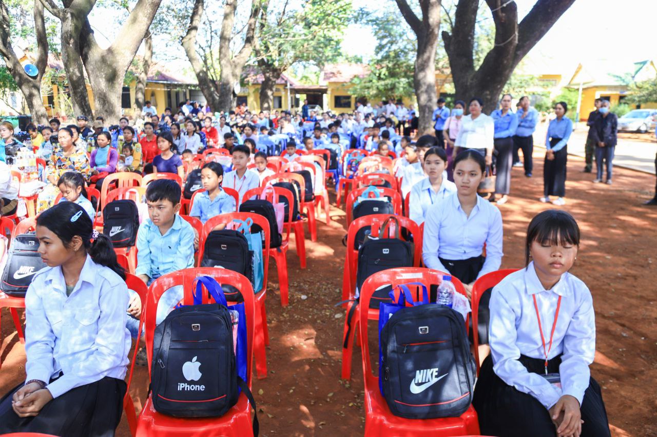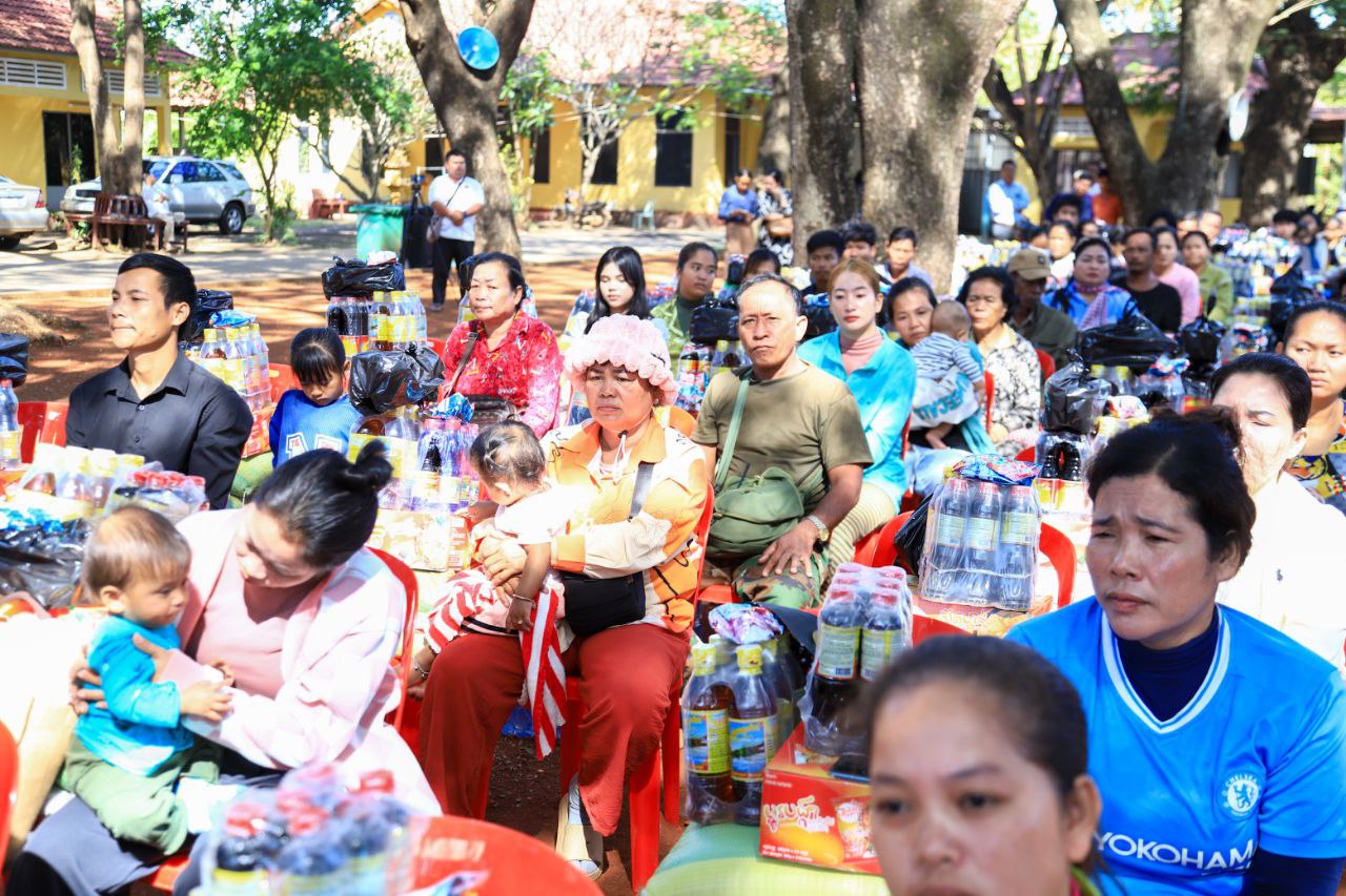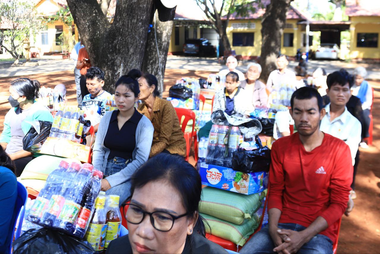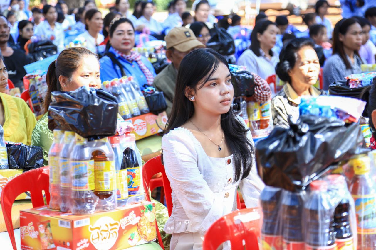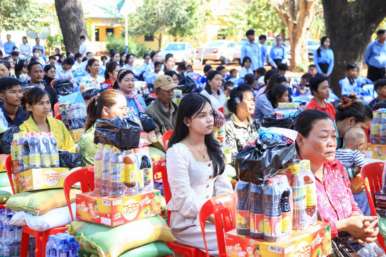 អំណោយទាំងនោះរួមមាន អង្ករ ទឹកស៉ីអ៉ីវ ទឹកត្រី ត្រីខ និងថវិការមួយចំនួនចំនួន ហើយចំពោះសិស្សានុសិស្សភៀសសឹក ក្នុងម្នាក់ៗ ទទួលាបាន សម្ភារសិក្សា និងសម្លៀកបំពាក់កីឡា នំចំណី ភេសជ្ជៈ ទឹកដោះគោ រួមជាមួយនឹងថវិកាឧបត្ថម្ភចំនួន ៤ ម៉ឺនរៀល ទុកជាការសម្រាលបន្ទុក ក្នុងអំឡុងពេលស្នាក់នៅបណ្តោះអាសន្ននេះ ។