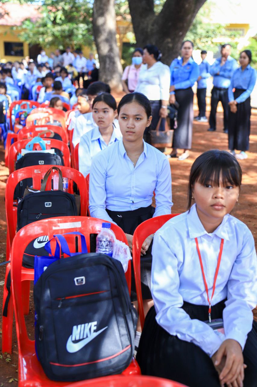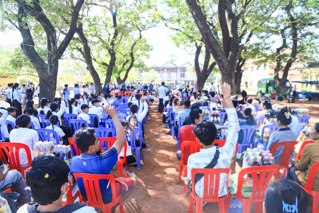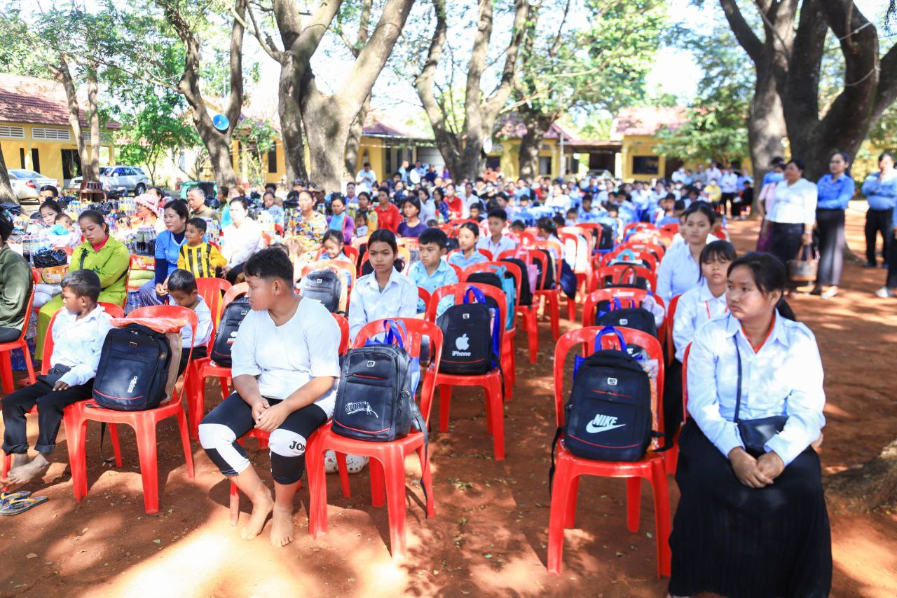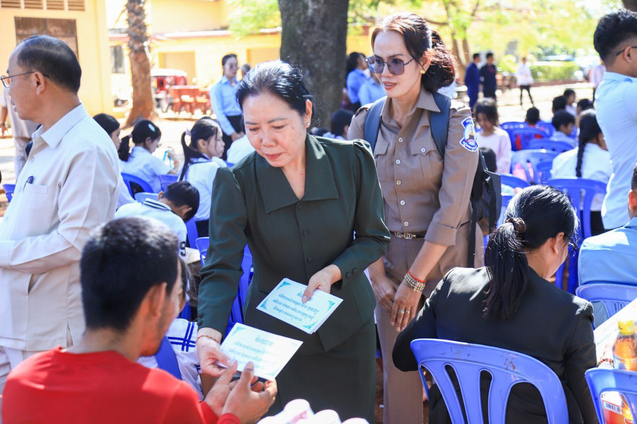 អំណោយទាំងនោះរួមមាន អង្ករ ទឹកស៉ីអ៉ីវ ទឹកត្រី ត្រីខ និងថវិការមួយចំនួនចំនួន ហើយចំពោះសិស្សានុសិស្សភៀសសឹក ក្នុងម្នាក់ៗ ទទួលាបាន សម្ភារសិក្សា និងសម្លៀកបំពាក់កីឡា នំចំណី ភេសជ្ជៈ ទឹកដោះគោ រួមជាមួយនឹងថវិកាឧបត្ថម្ភចំនួន ៤ ម៉ឺនរៀល ទុកជាការសម្រាលបន្ទុក ក្នុងអំឡុងពេលស្នាក់នៅបណ្តោះអាសន្ននេះ ។