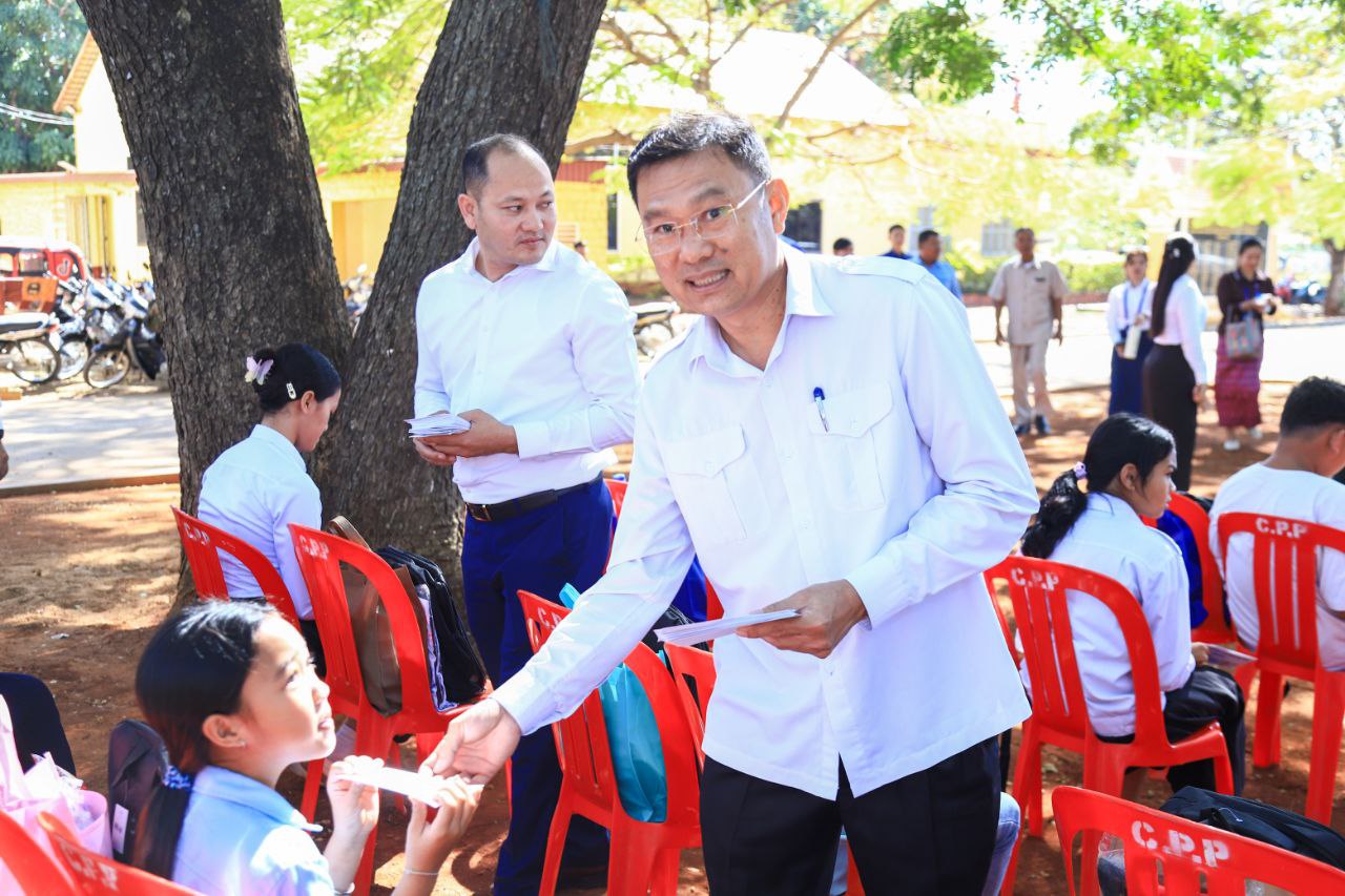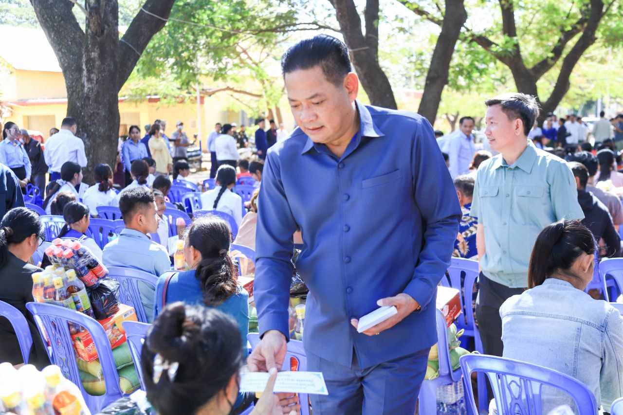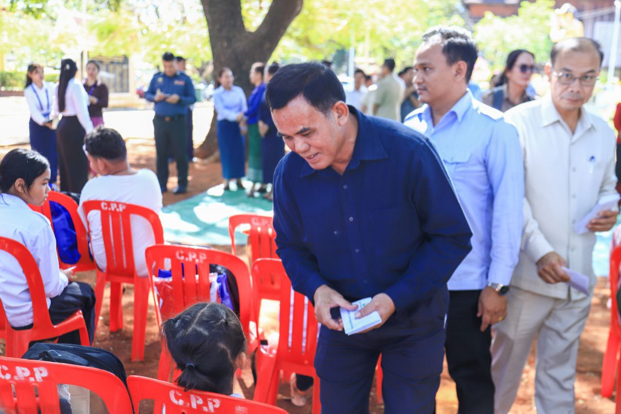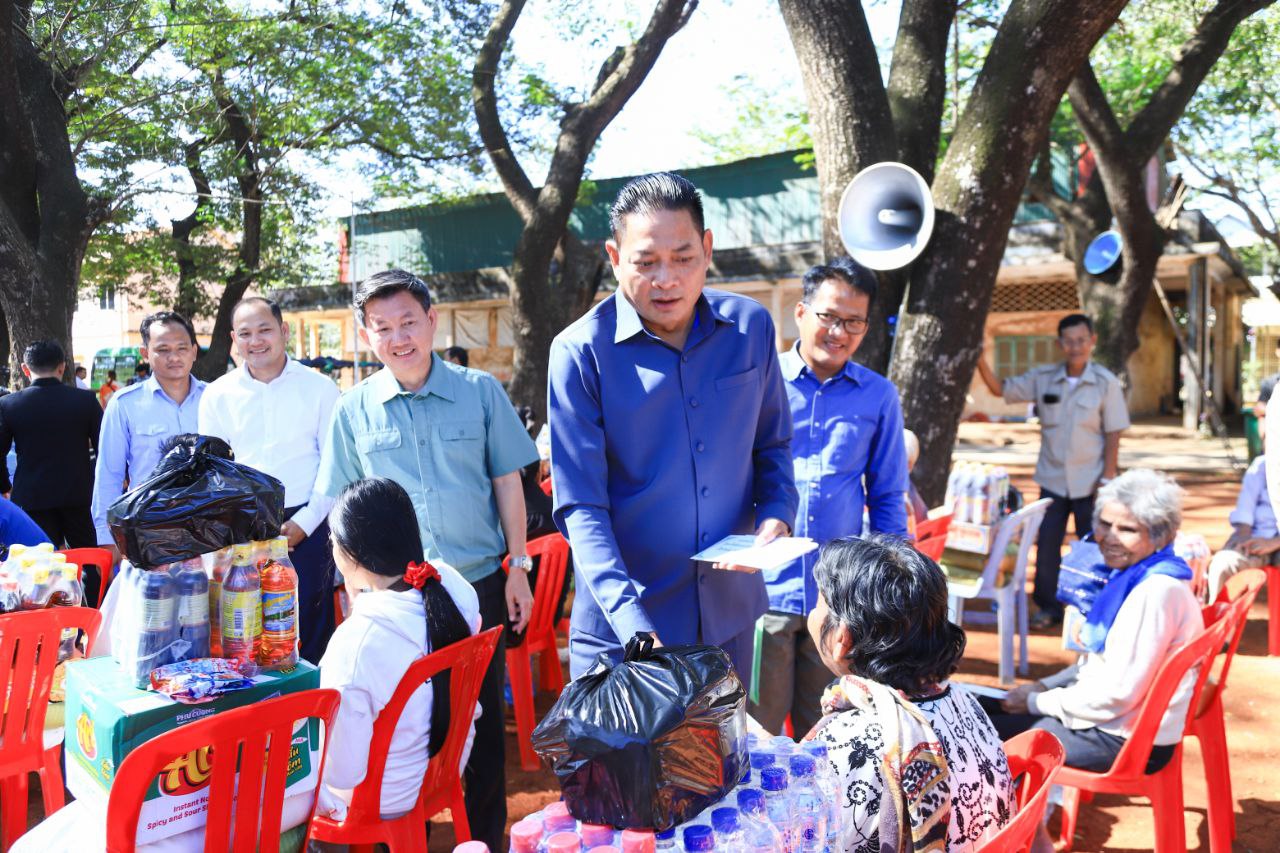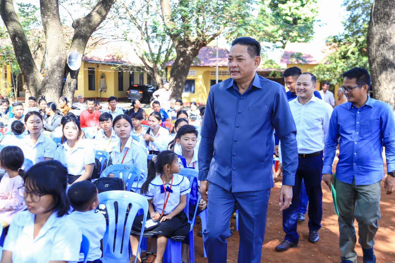 អំណោយទាំងនោះរួមមាន អង្ករ ទឹកស៉ីអ៉ីវ ទឹកត្រី ត្រីខ និងថវិការមួយចំនួនចំនួន ហើយចំពោះសិស្សានុសិស្សភៀសសឹក ក្នុងម្នាក់ៗ ទទួលាបាន សម្ភារសិក្សា និងសម្លៀកបំពាក់កីឡា នំចំណី ភេសជ្ជៈ ទឹកដោះគោ រួមជាមួយនឹងថវិកាឧបត្ថម្ភចំនួន ៤ ម៉ឺនរៀល ទុកជាការសម្រាលបន្ទុក ក្នុងអំឡុងពេលស្នាក់នៅបណ្តោះអាសន្ននេះ ។
