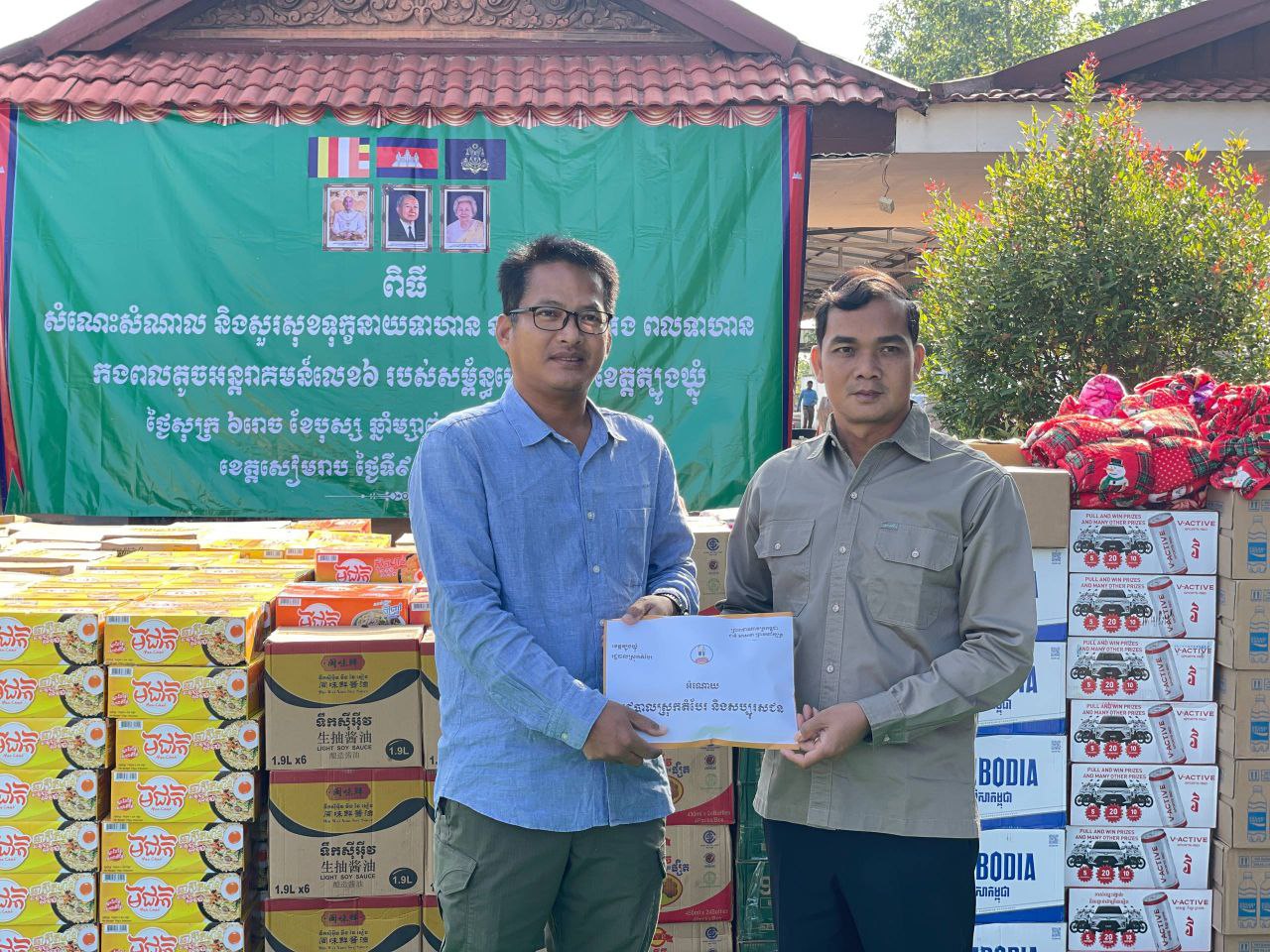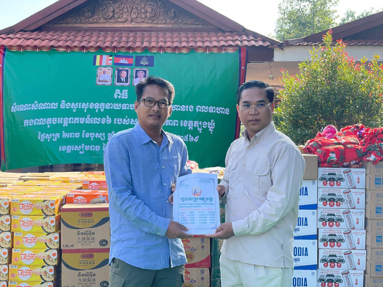 ឯកឧត្តមអភិបាលខេត្ត និងប្រតិភូអមដំណើរ បានអញ្ជើញទៅដល់ទីតាំងគោលដៅចំនួន ៣ រួមមាន ទីតាំងគោលដៅទី ១ អង្គភាពកងពលលេខ ៦ ប្រគល់ជូនមេបញ្ជាការកងពល នៅស្រុកសូតនិគម ខេត្តសៀមរាប ទីតាំងគោលដៅទី ២ អង្គភាពកងពលលេខ ២១ ប្រគល់ជូនមេបញ្ជាការកងពល នៅស្រុកស្រីស្នំ ខេត្តសៀមរាប ទីតាំងគោលដៅទី ៣ រដ្ឋបាលខេត្តឧត្តរមានជ័យ ប្រគល់ជូនឯកឧត្តមអភិបាលខេត្ត នៅស្រុកចុងកាល់ ដើម្បីចាត់ចែង ជួយដល់បងប្អូនប្រជាពលរដ្ឋភៀសសឹក ។