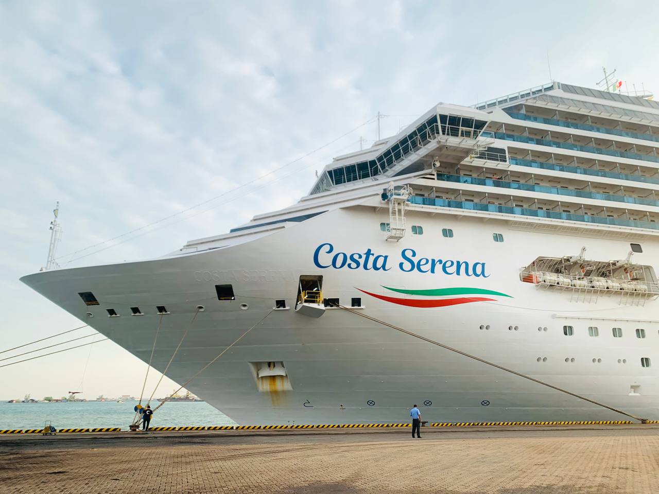 ខេត្តព្រះសីហនុសូមស្វាគមន៍ 🇰🇭នាព្រឹកថ្ងៃទី ៤ ខែ កុម្ភៈ ឆ្នាំ ២០២៦ នាវាទេសចរណ៍ ១ គ្រឿង ឈ្មោះ Costa Serena មានភ្ញៀវប្រហែល ២.៨៩៥ នាក់ នាវិកប្រហែល ១.០៣១ នាក់ បានចូលចត នៅកំពង់ផែស្វយ័តក្រុងព្រះសីហនុ មកពីរប្រទេសវៀតណាម ចេញវិញទៅប្រទេសថៃ
