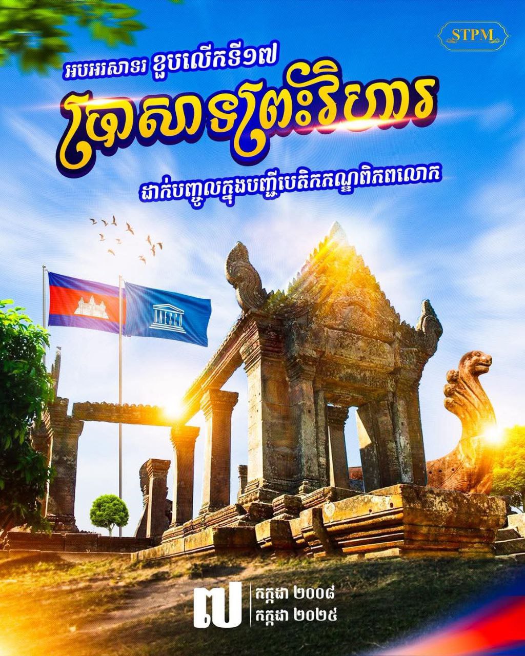 ប្រាសាទព្រះវិហារ ត្រូវបានចុះក្នុងបញ្ជីបេតិក ភណ្ឌពិភពលោករបស់អង្គការយូណេស្កូ ខួប លើកទី ១៧ ( The Temple of Preah Vihear was inscribed on the UNESCO World Heritage List )