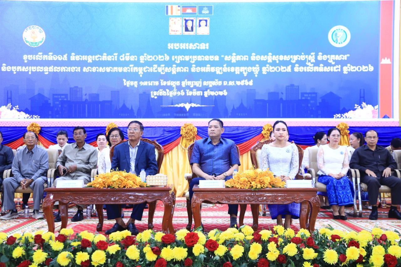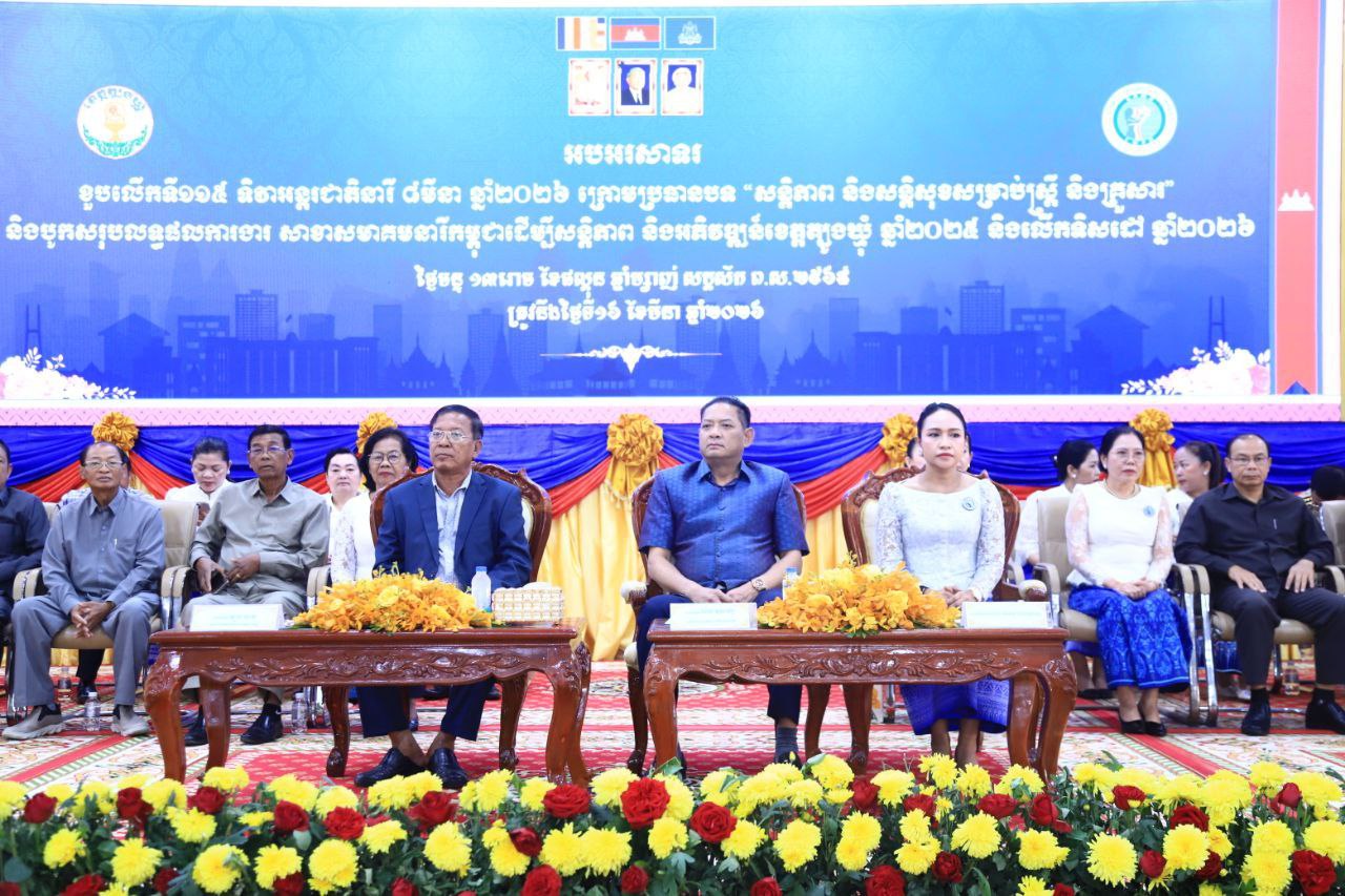 (ត្បូងឃ្មុំ): រដ្ឋបាលខេត្តត្បូងឃ្មុំ បានរៀបចំពិធីអបអរសាទរខួបលើកទី ១១៥ ទិវាអន្តរជាតិនារី ៨ មីនា ក្រោមប្រធានបទ «សន្តិភាព និងសន្តិសុខសម្រាប់ស្ត្រី និងគ្រួសារ» នៅព្រឹកថ្ងៃទី ១៦ ខែមីនា ឆ្នាំ ២០២៦ ។