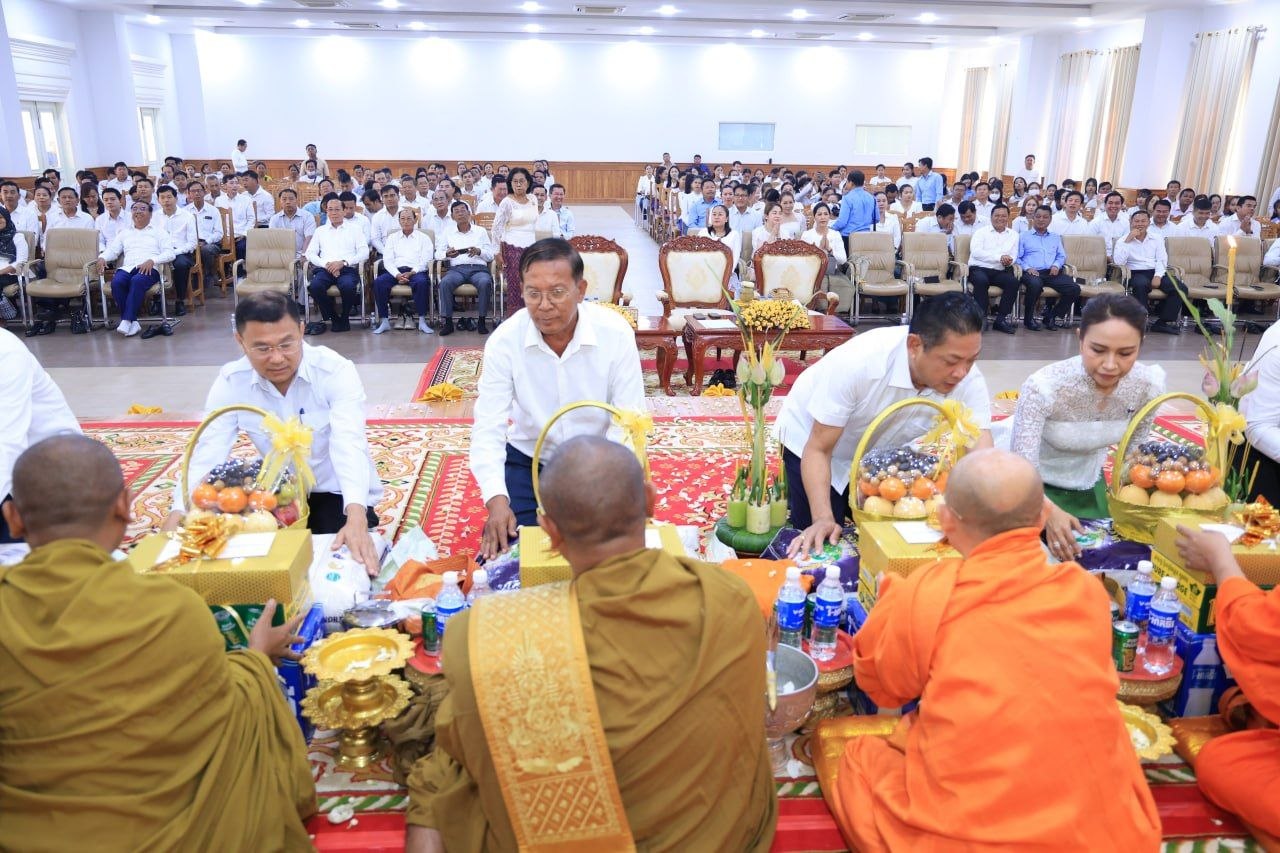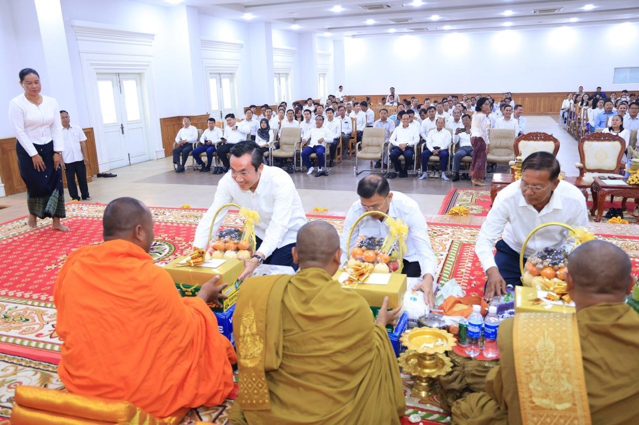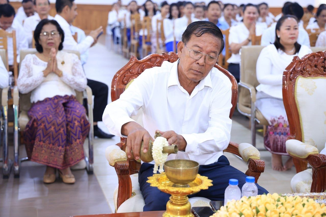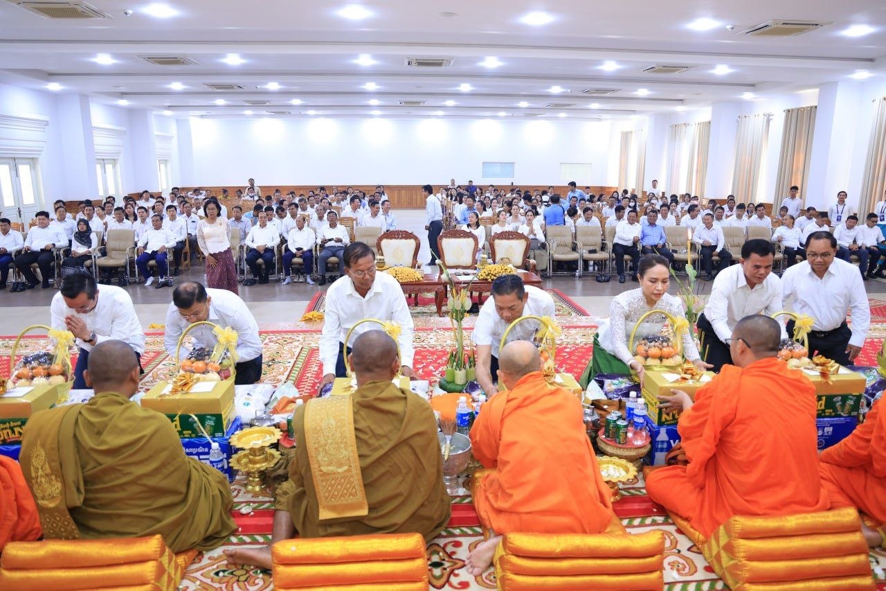 ( ត្បូងឃ្មុំ ): ឯកឧត្តម ឡុង ធាម ប្រធានក្រុមប្រឹក្សាខេត្តត្បូងឃ្មុំ និងឯកឧត្តម ប៉ែន កុសល្យ អភិបាលនៃគណៈអភិបាលខេត្ត និងលោកជំទាវ ហេង សំអាន ប៉ែនកុសល្យ ប្រធានកិត្តិយសសាខាសមាគមនារីកម្ពុជាដើម្បីសន្តិភាព និងអភិវឌ្ឍន៍ខេត្តត្បូងឃ្មុំ បានអញ្ជើញសូត្រមន្តចម្រើនព្រះបរិត្ត និងសំណេះសំណាលជាមួយមន្ត្រីរាជការនៃរដ្ឋបាលខេត្តត្បូងឃ្មុំ តាមបែបសាសនា ដោយមានការសូត្រមន្តចម្រើនព្រះបរិត្ត ដើម្បីបណ្តេញគ្រោះចង្រៃឆ្នាំចាស់ និងទទួលពរជ័យសិរីសួស្តីពីទេវតាឆ្នាំថ្មី នាថ្ងៃទី ៨ ខែមេសា ឆ្នាំ ២០២៦ ។