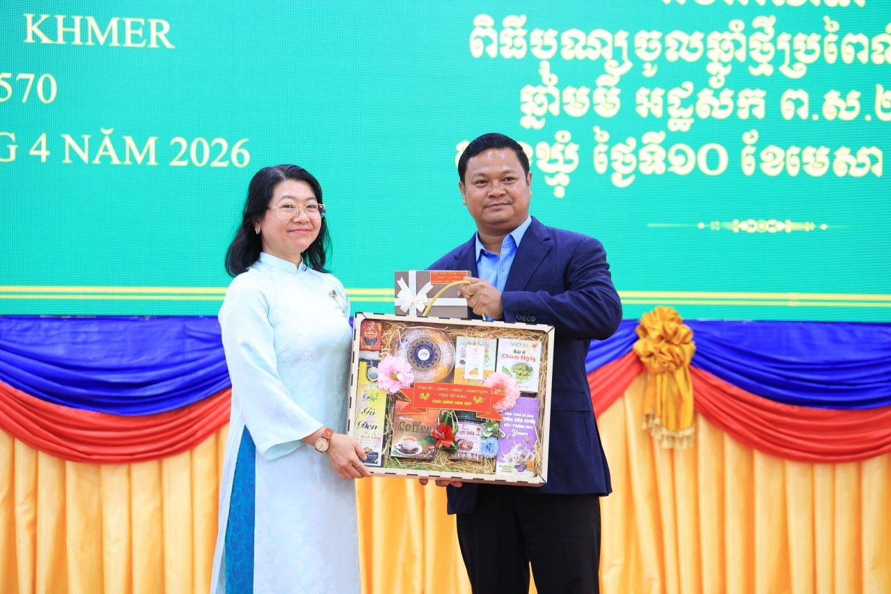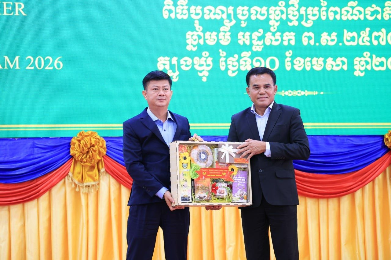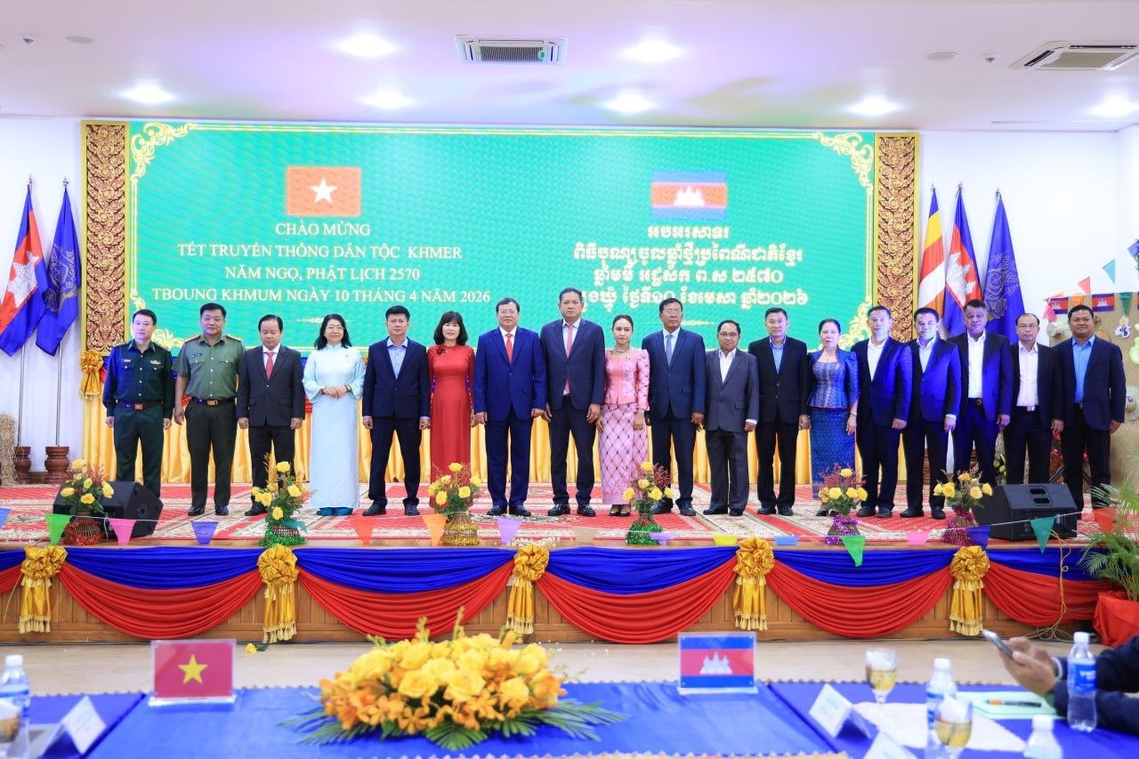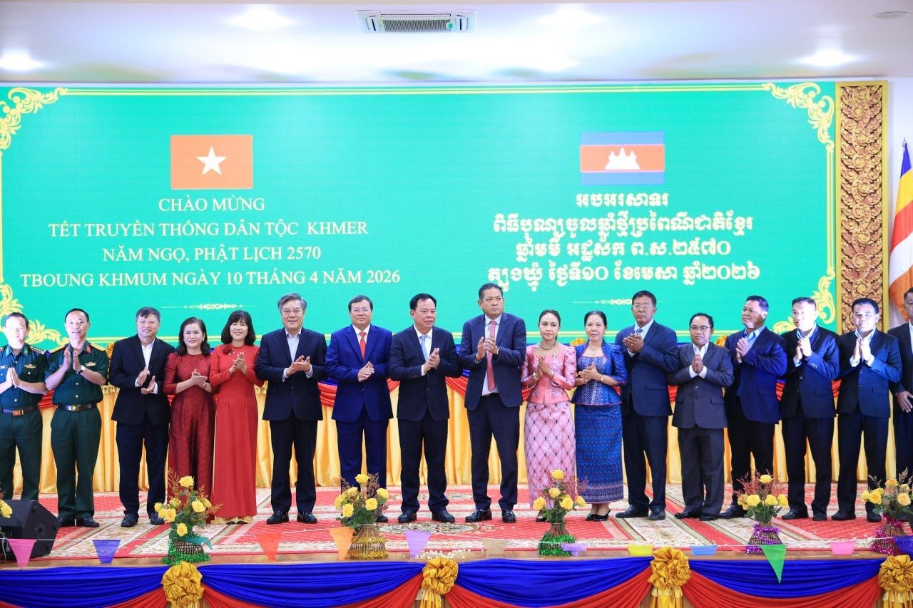 (ត្បូងឃ្មុំ): ឯកឧត្តម ឡុង ធាម ប្រធានក្រុមប្រឹក្សាខេត្ត និងឯកឧត្តម ប៉ែន កុសល្យ អភិបាលនៃគណៈអភិបាលខេត្តត្បូងឃ្មុំ រួមជាមួយលោកជំទាវ ហេង សំអាន ប៉ែនកុសល្យ ប្រធានសមាគមនារីកម្ពុជាដើម្បីសន្តិភាព និងអភិវឌ្ឍន៍ខេត្ត បានទទួលជួបសម្តែងការគួរសម និងទទួលពរជ័យពីគណៈប្រតិភូនៃសាធារណរដ្ឋសង្គមនិយមវៀតណាម ដឹកនាំដោយ ឯកឧត្តម ឡេ វ៉ាន់ហាន់ ប្រធានគណៈកម្មាធិការប្រជាជនខេត្តតៃនិញ តំណាងឱ្យថ្នាក់ដឹកនាំខេត្តតៃនិញ និងខេត្តដុងណាយ នៅសាលាខេត្តត្បូងឃ្មុំ នាថ្ងៃទី ១០ ខែមេសា ឆ្នាំ២០២៦ ។