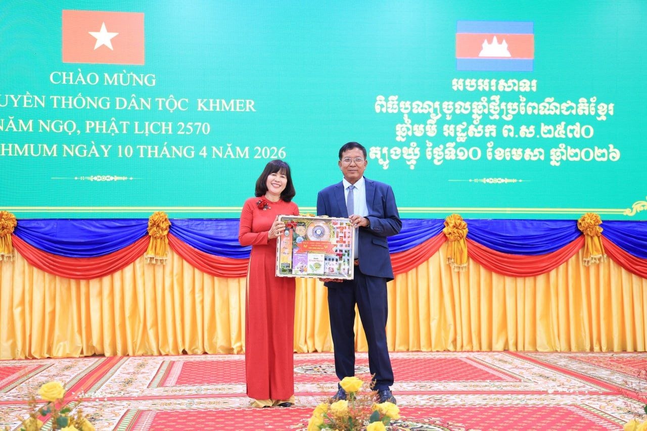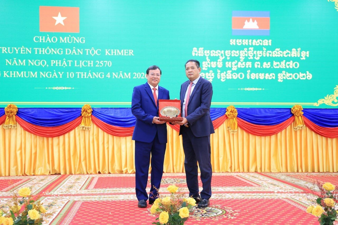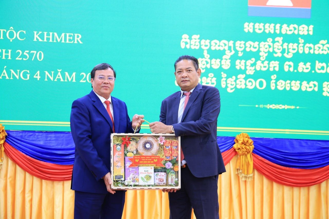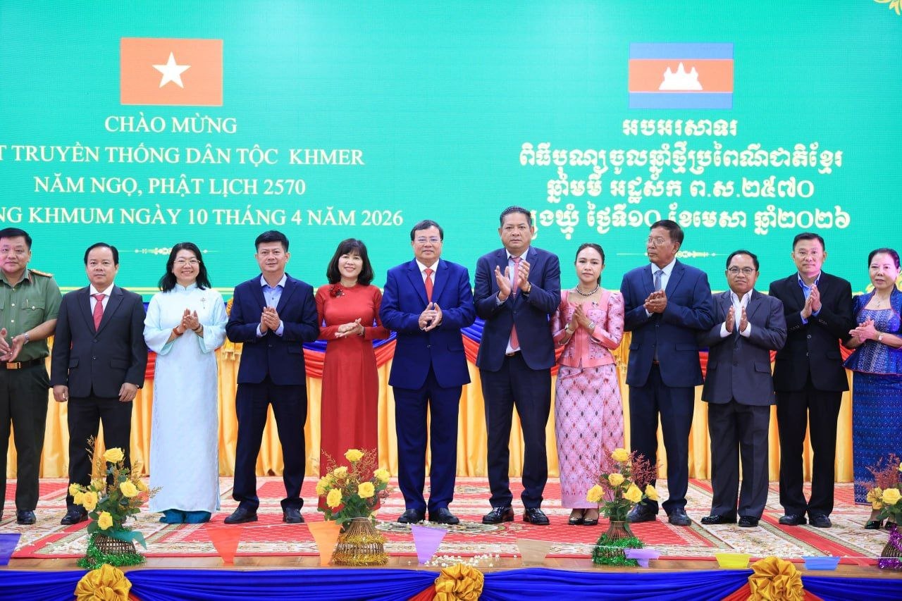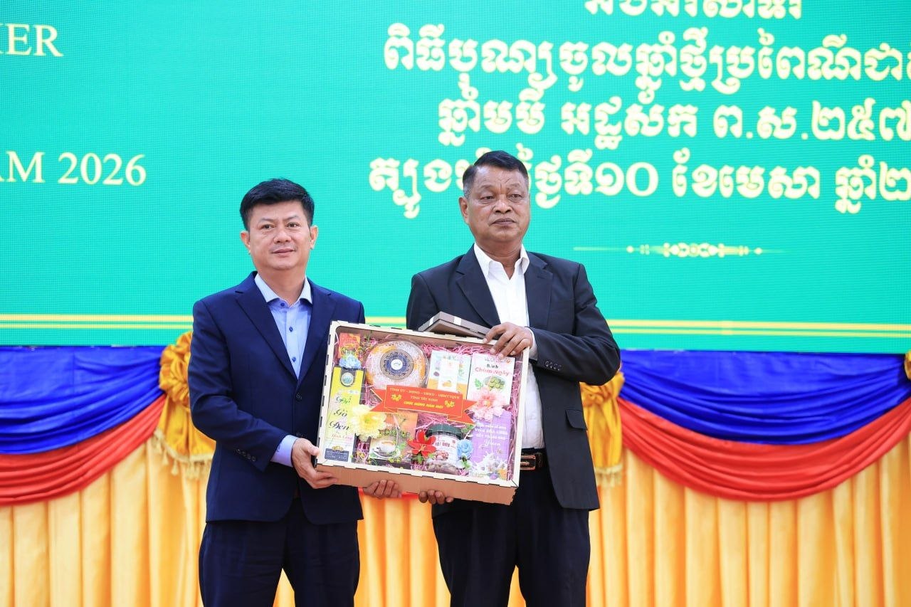 (ត្បូងឃ្មុំ): ឯកឧត្តម ឡុង ធាម ប្រធានក្រុមប្រឹក្សាខេត្ត និងឯកឧត្តម ប៉ែន កុសល្យ អភិបាលនៃគណៈអភិបាលខេត្តត្បូងឃ្មុំ រួមជាមួយលោកជំទាវ ហេង សំអាន ប៉ែនកុសល្យ ប្រធានសមាគមនារីកម្ពុជាដើម្បីសន្តិភាព និងអភិវឌ្ឍន៍ខេត្ត បានទទួលជួបសម្តែងការគួរសម និងទទួលពរជ័យពីគណៈប្រតិភូនៃសាធារណរដ្ឋសង្គមនិយមវៀតណាម ដឹកនាំដោយ ឯកឧត្តម ឡេ វ៉ាន់ហាន់ ប្រធានគណៈកម្មាធិការប្រជាជនខេត្តតៃនិញ តំណាងឱ្យថ្នាក់ដឹកនាំខេត្តតៃនិញ និងខេត្តដុងណាយ នៅសាលាខេត្តត្បូងឃ្មុំ នាថ្ងៃទី ១០ ខែមេសា ឆ្នាំ២០២៦ ។