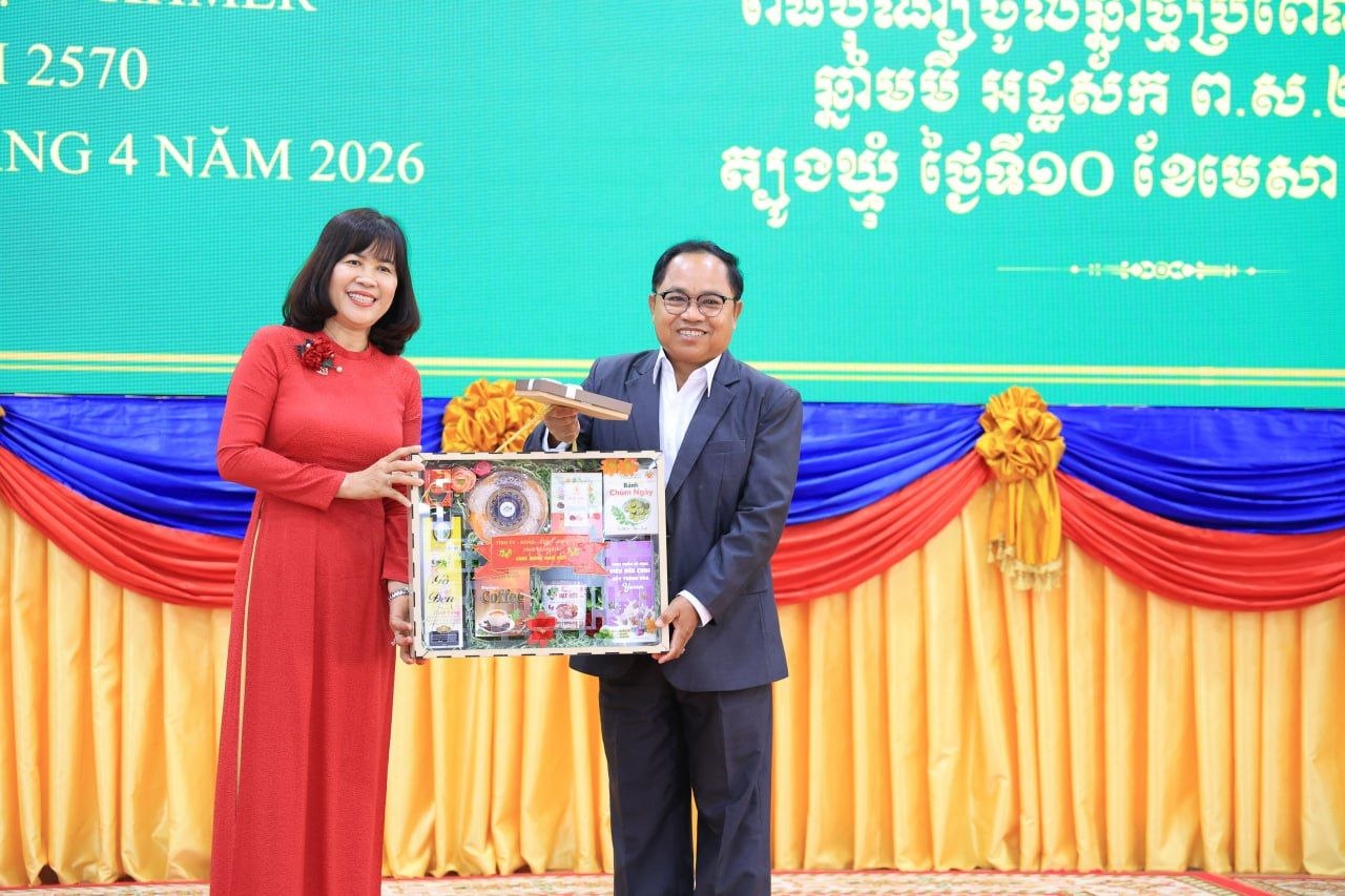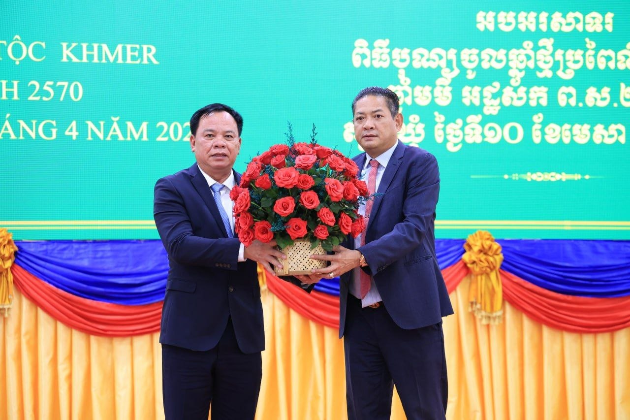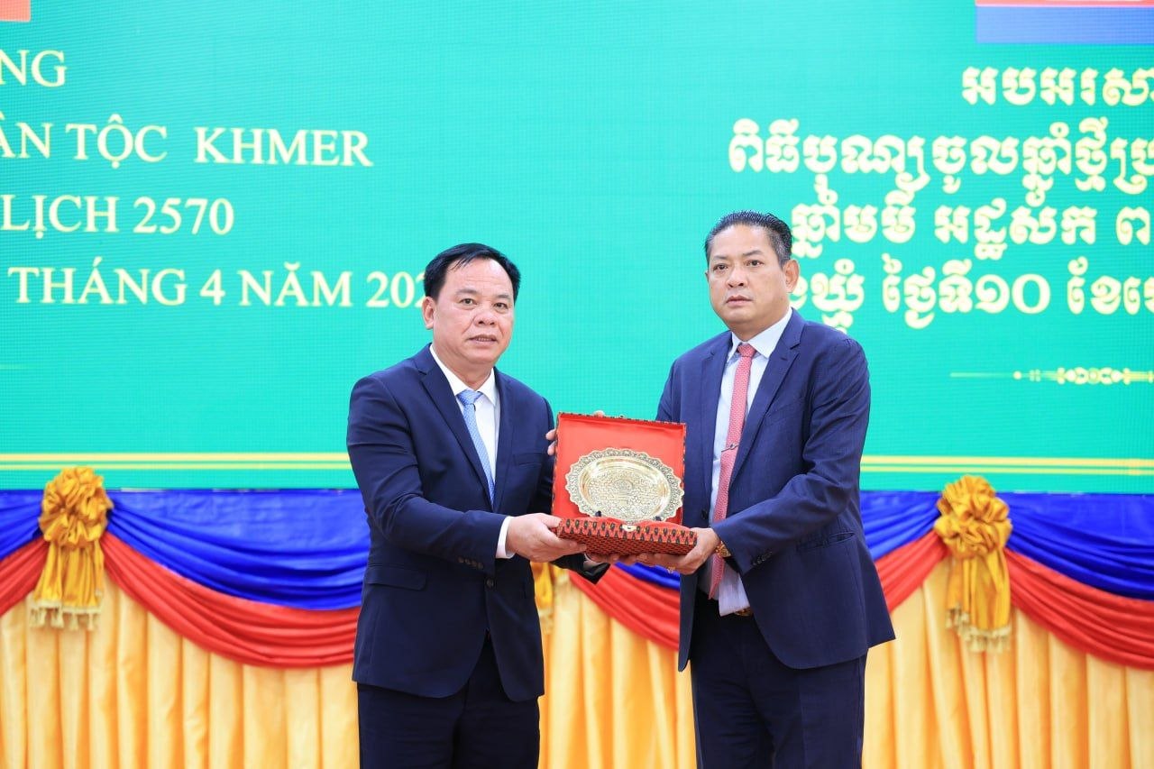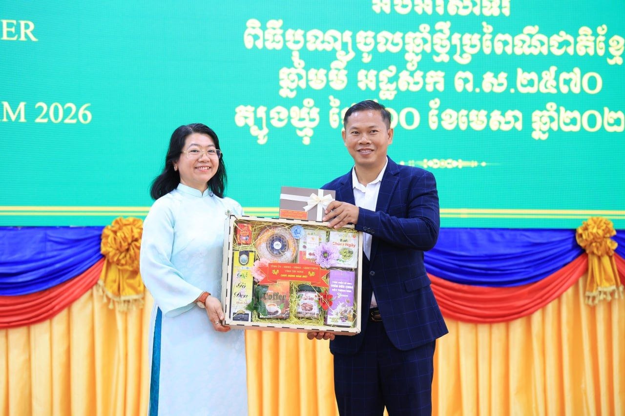 (ត្បូងឃ្មុំ): ឯកឧត្តម ឡុង ធាម ប្រធានក្រុមប្រឹក្សាខេត្ត និងឯកឧត្តម ប៉ែន កុសល្យ អភិបាលនៃគណៈអភិបាលខេត្តត្បូងឃ្មុំ រួមជាមួយលោកជំទាវ ហេង សំអាន ប៉ែនកុសល្យ ប្រធានសមាគមនារីកម្ពុជាដើម្បីសន្តិភាព និងអភិវឌ្ឍន៍ខេត្ត បានទទួលជួបសម្តែងការគួរសម និងទទួលពរជ័យពីគណៈប្រតិភូនៃសាធារណរដ្ឋសង្គមនិយមវៀតណាម ដឹកនាំដោយ ឯកឧត្តម ឡេ វ៉ាន់ហាន់ ប្រធានគណៈកម្មាធិការប្រជាជនខេត្តតៃនិញ តំណាងឱ្យថ្នាក់ដឹកនាំខេត្តតៃនិញ និងខេត្តដុងណាយ នៅសាលាខេត្តត្បូងឃ្មុំ នាថ្ងៃទី ១០ ខែមេសា ឆ្នាំ២០២៦ ។