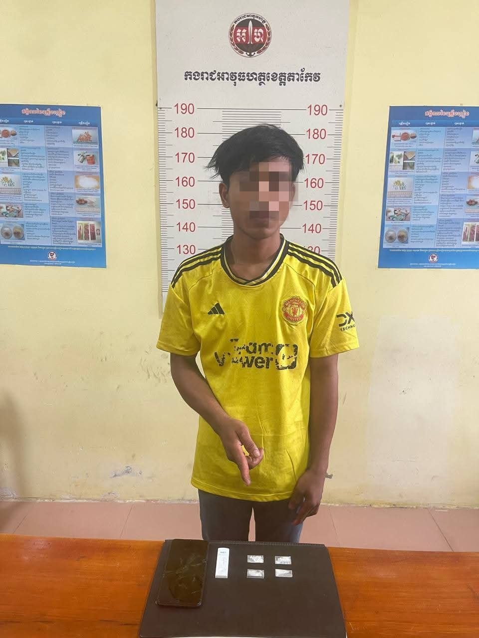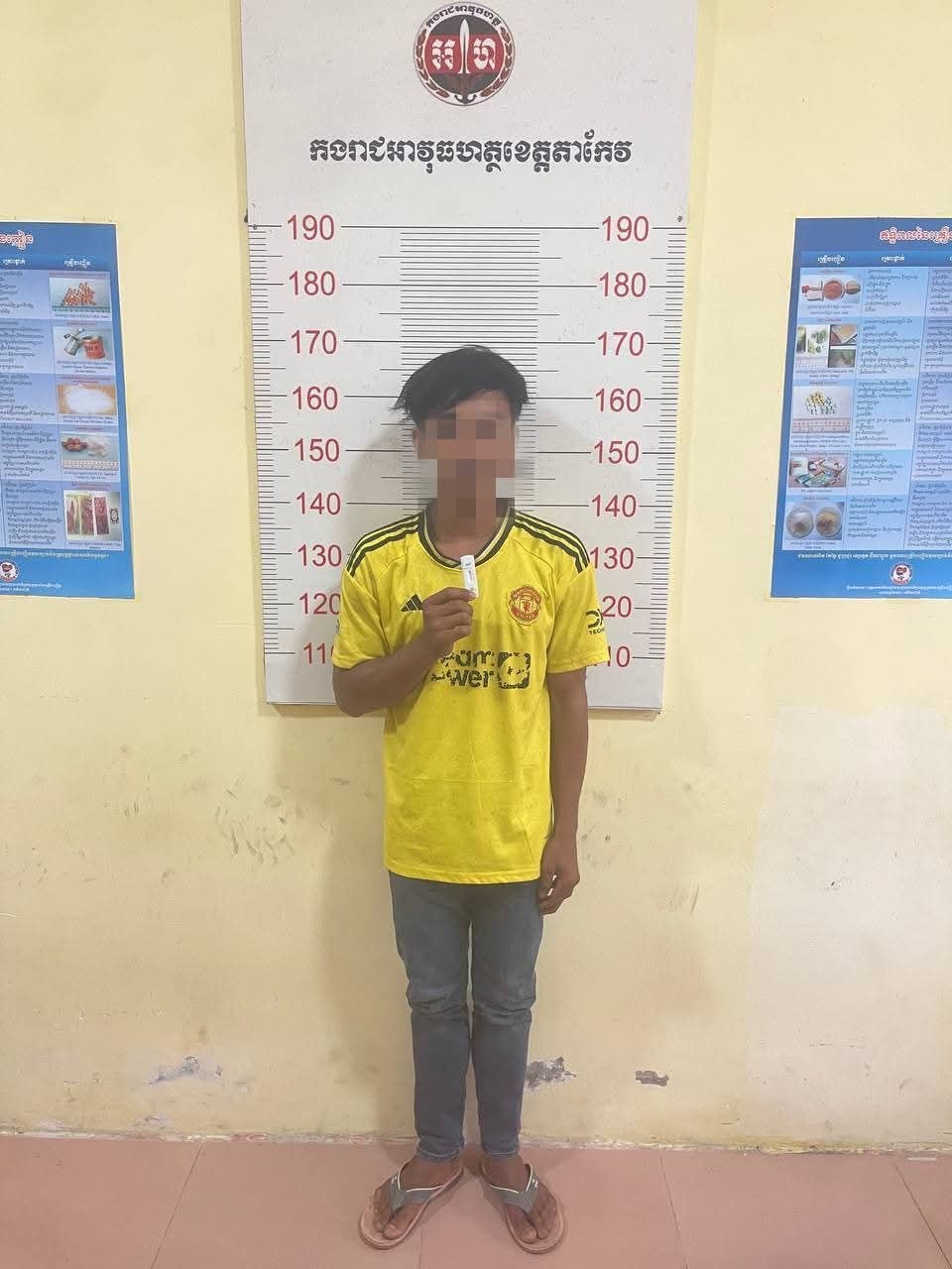 ( តាកែវ ): កម្លាំងកងរាជអាវុធហត្ថខេត្តតាកែវ និងសម្របសម្រួលនីតិវិធី ដោយឯកឧត្តម ឯក ឆេងហួត ព្រះរាជអាជ្ញាអមសាលាដំបូងខេត្តតាកែវ សហលារជាមួយកម្លាំងមូលដ្ឋានកងរាជអាវុធហត្ថស្រុកព្រៃកប្បាស បានចុះបង្ក្រាបករណី រក្សាទុក និងប្រើប្រាស់នូវសារធាតុញៀនជាក់ស្ដែងកាលពីវេលាម៉ោង ១៤:៤០ នាទី ថ្ងៃទី ៨ ខែមេសា ឆ្នាំ ២០២៦ ។