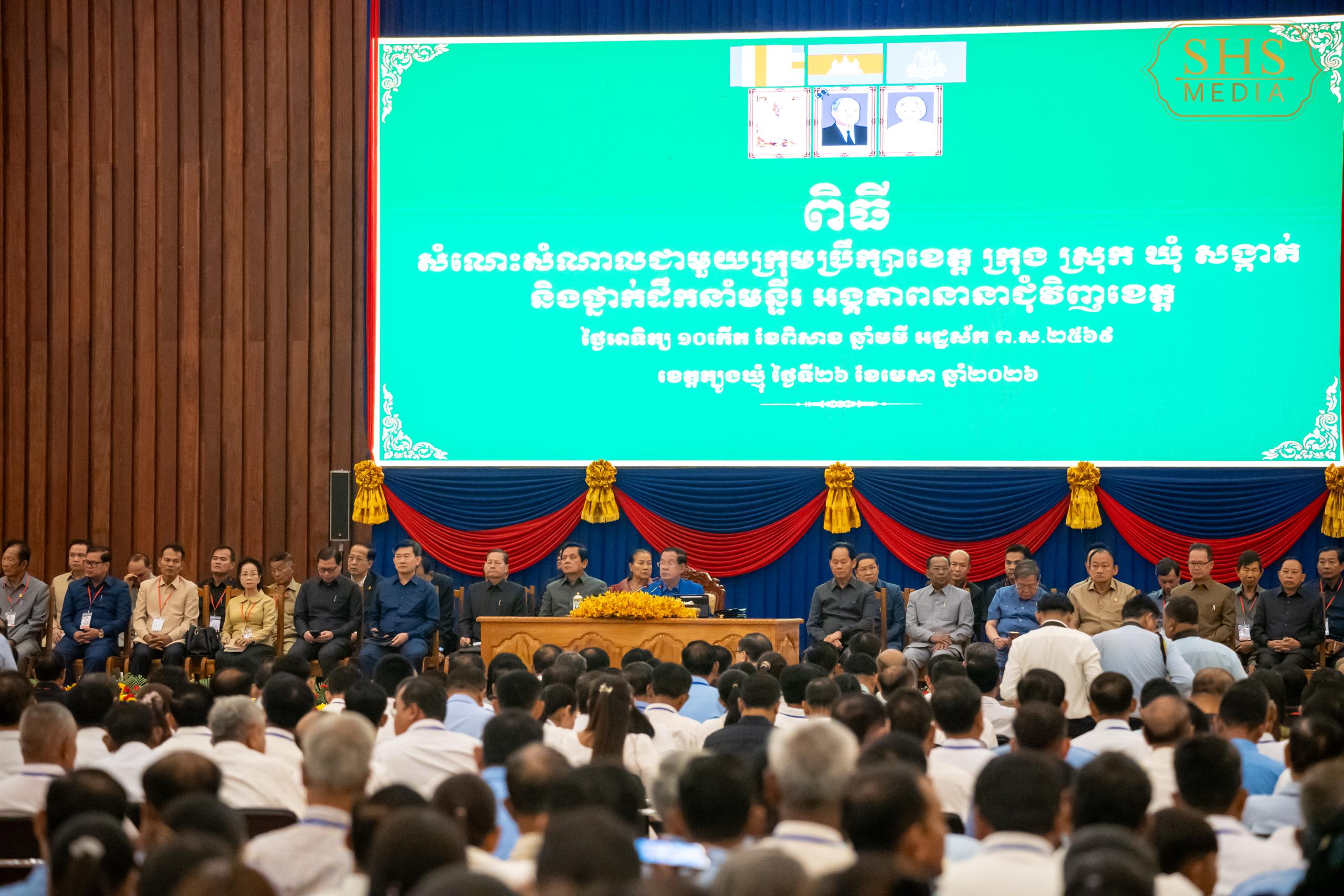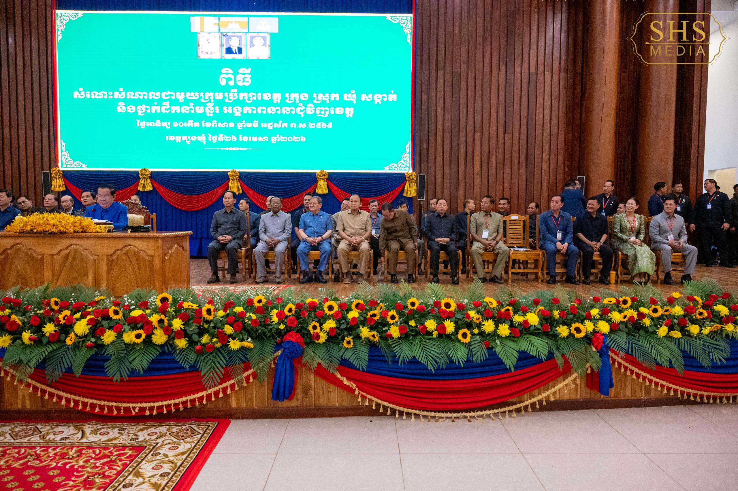 ( ខេត្តត្បូងឃ្មុំ ): សម្តេចអគ្គមហាសេនាបតីតេជោ ហ៊ុន សែន ប្រមុខរដ្ឋស្តីទីនៃព្រះរាជាណាចក្រកម្ពុជា អញ្ជើញសំណេះសំណាលជាមួយក្រុមប្រឹក្សាខេត្ត ក្រុង ស្រុក ឃុំ សង្កាត់ និងថ្នាក់ដឹកនាំមន្ទីរ អង្គភាពនានាជុំវិញខេត្តត្បូងឃ្មុំ នៅសាលប្រជុំខេត្តត្បូងឃ្មុំ នាព្រឹកថ្ងៃអាទិត្យ ១០ កើត ខែពិសាខ ឆ្នាំមមី អដ្ឋស័ក ពុទ្ធសករាជ ២៥៦៩ ត្រូវនឹងថ្ងៃទី ២៦ ខែមេសា ឆ្នាំ ២០២៦ ៕